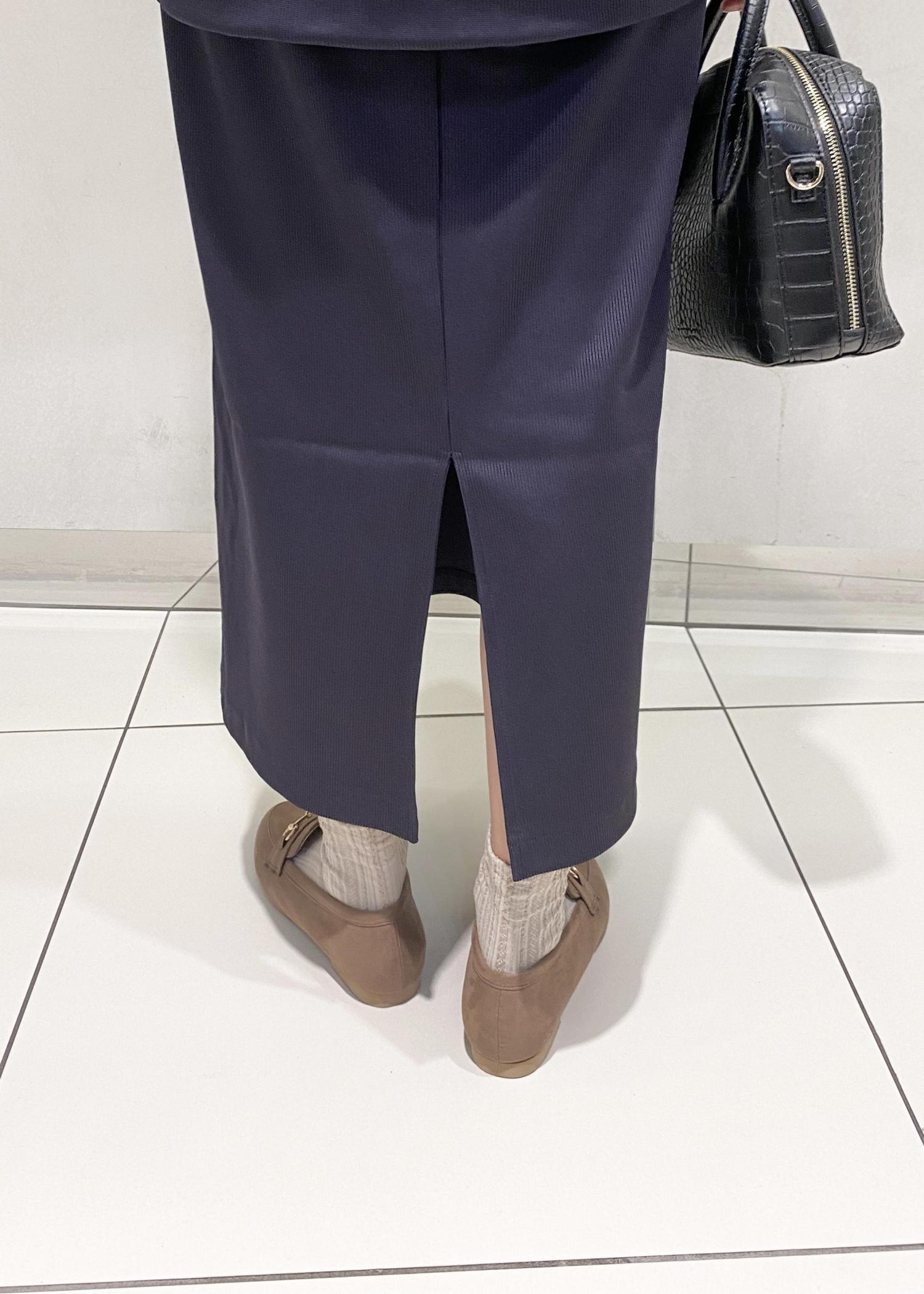 さらに、ナローシルエットのスカートが楽なのに細見えさせてくれて、これから大活躍間違いなしなアイテムですよ!
