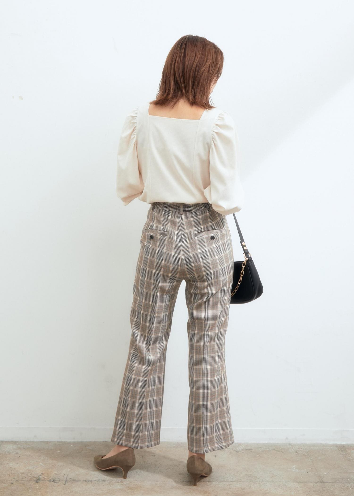 新作の2WAYブラウス×チェックフレアパンツの大人な秋コーデです◎ ヒールパンプスを合わせてキレイめにしました。 パンツはシルエットが綺麗なので美脚効果あり! くるぶし丈なのでフラットシューズでも安心です。 季節の変わり目にぴったりなスタイル。 是非CHECKしてください♪