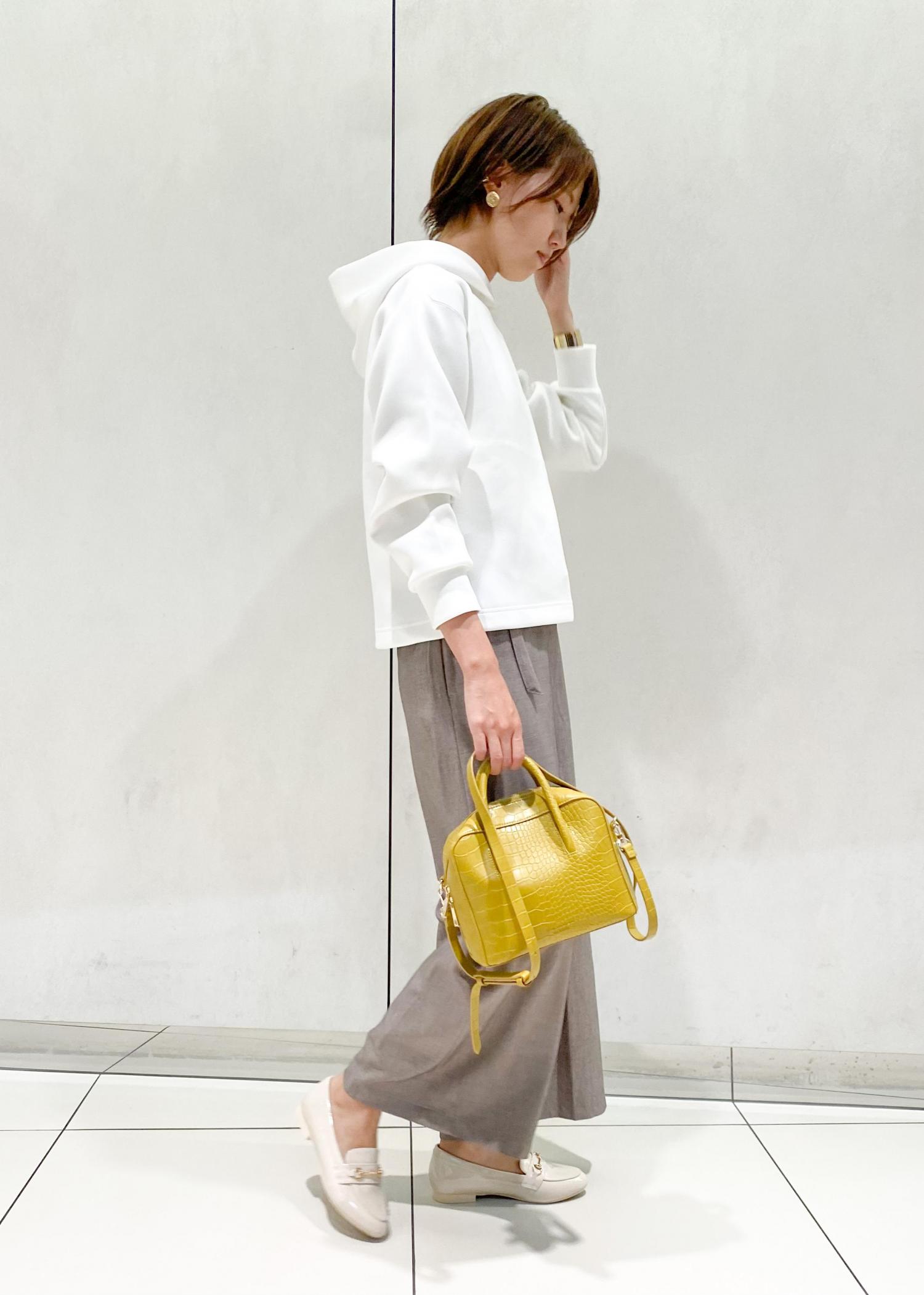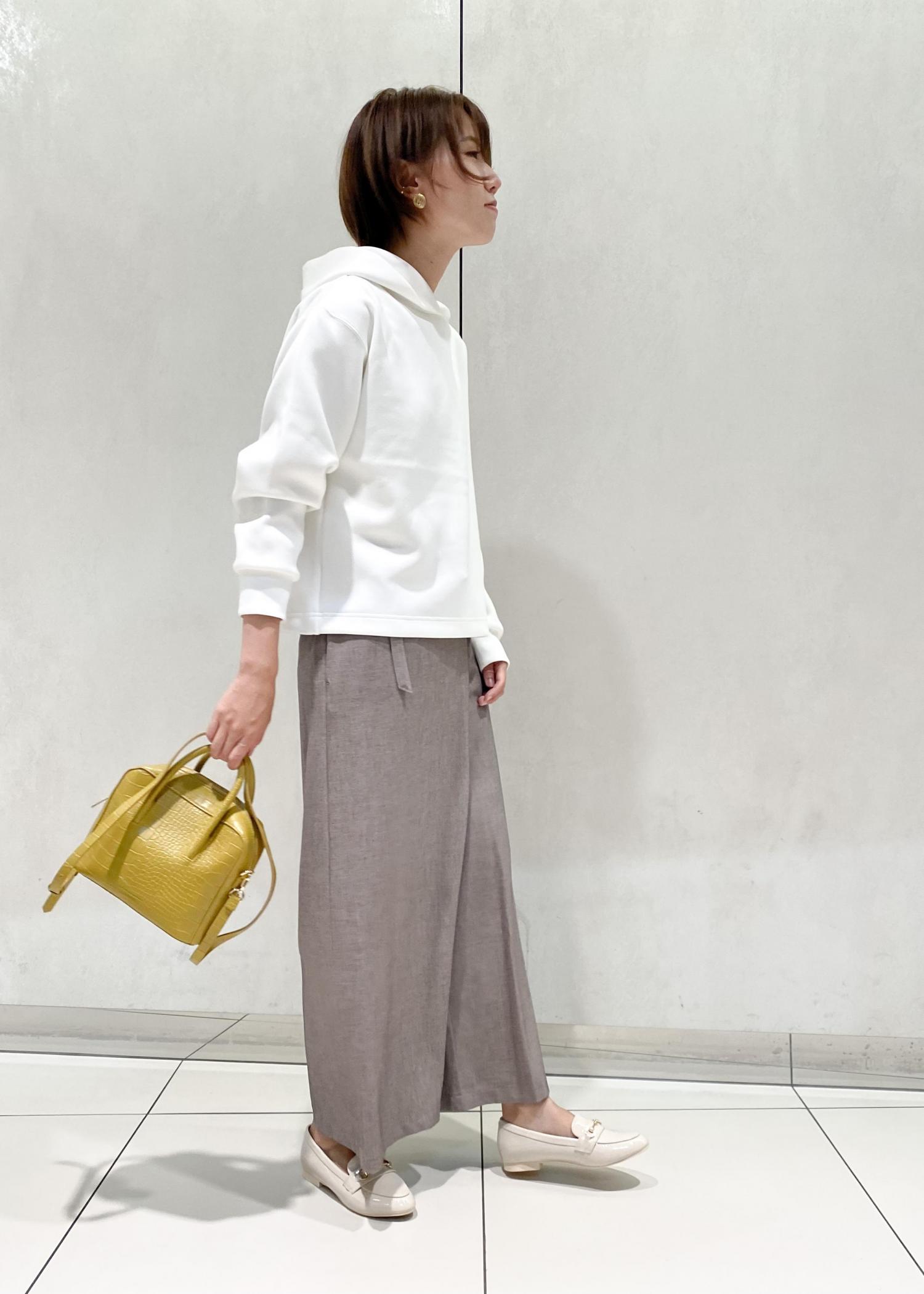 ワイドパンツを合わせてもすっきり着れるので、楽にオシャレを楽しんでいただけますよ♪