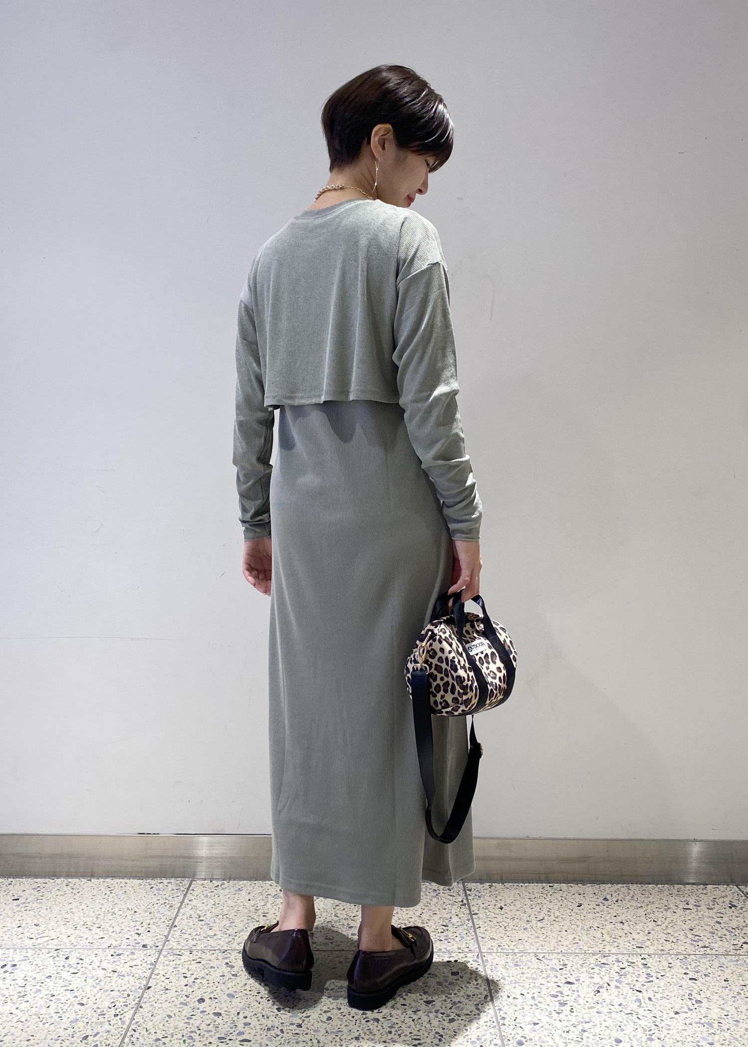 肌馴染み良いグリーンのワンピースは、モノトーン好きで色物挑戦してみたい方にもオススメのアイテムです♪