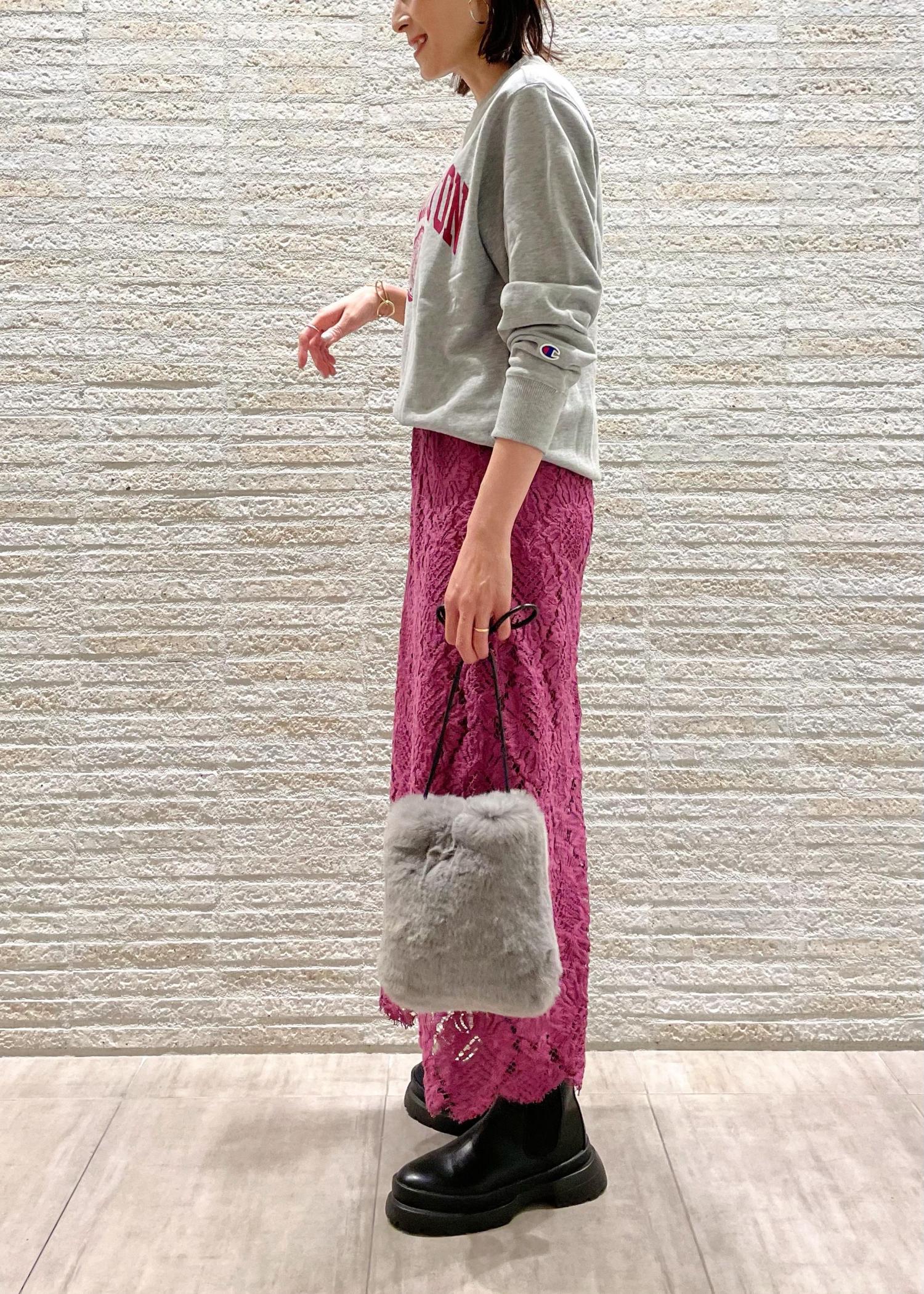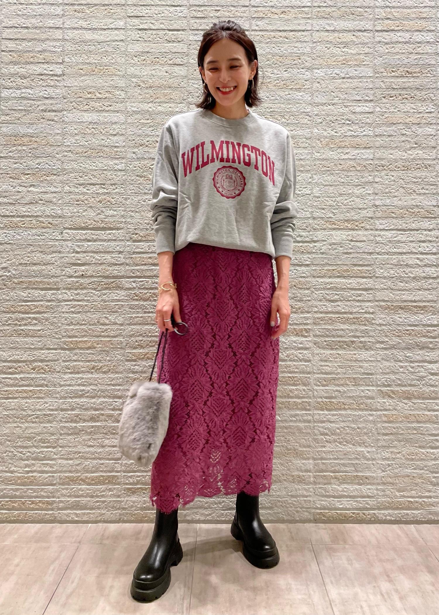 あえてレースなどのスカートで着ると、カジュアルすぎない