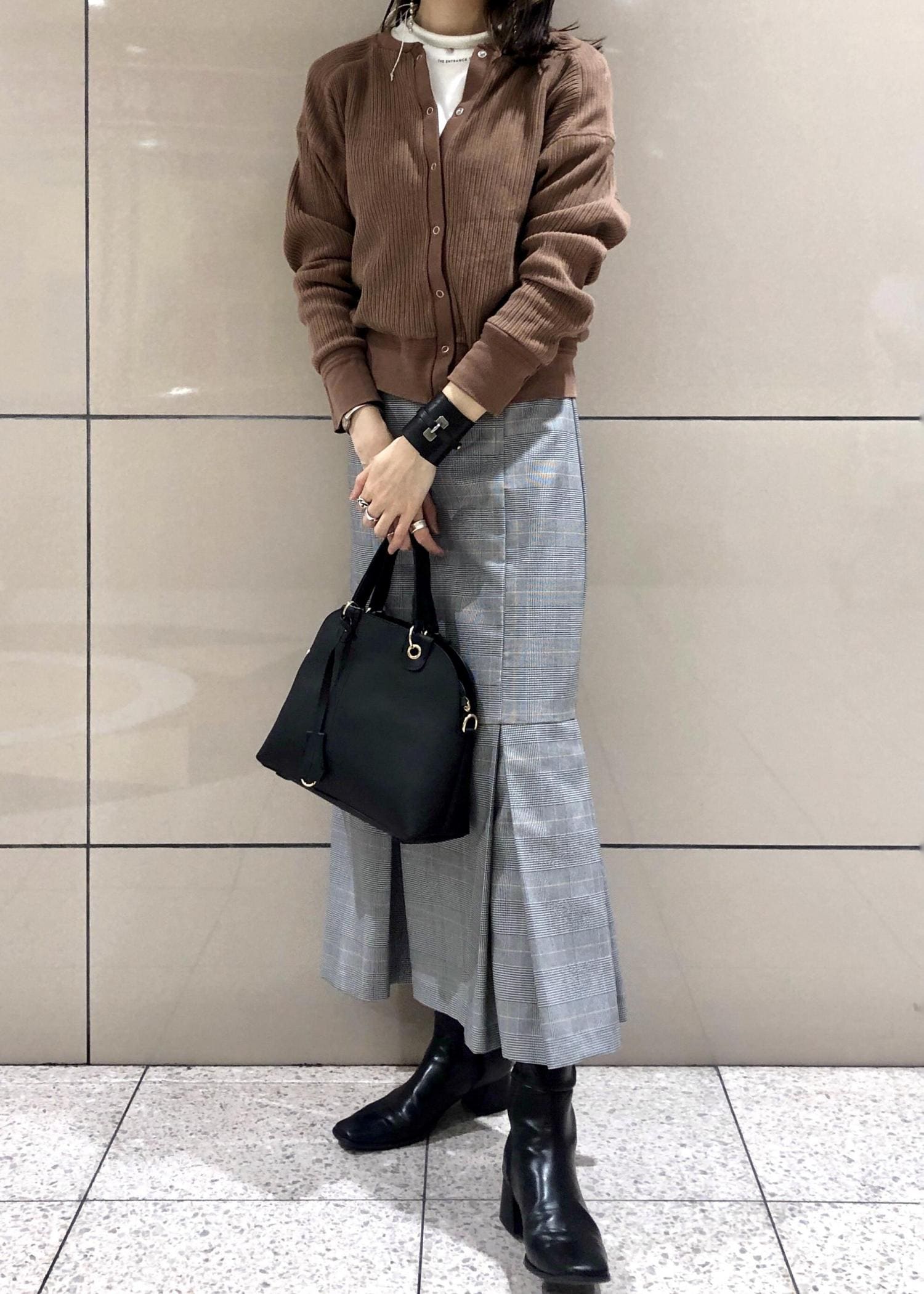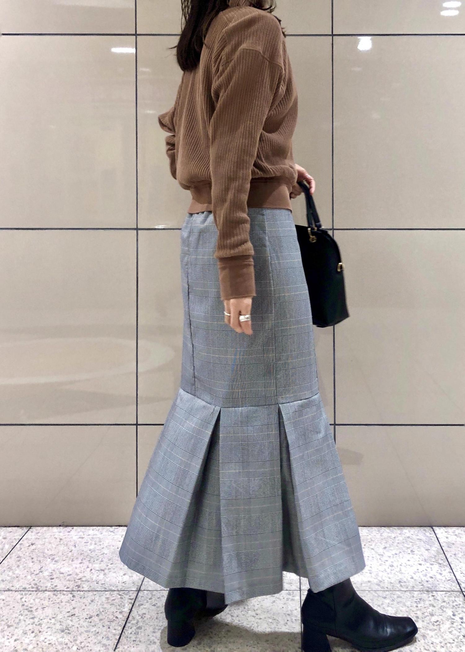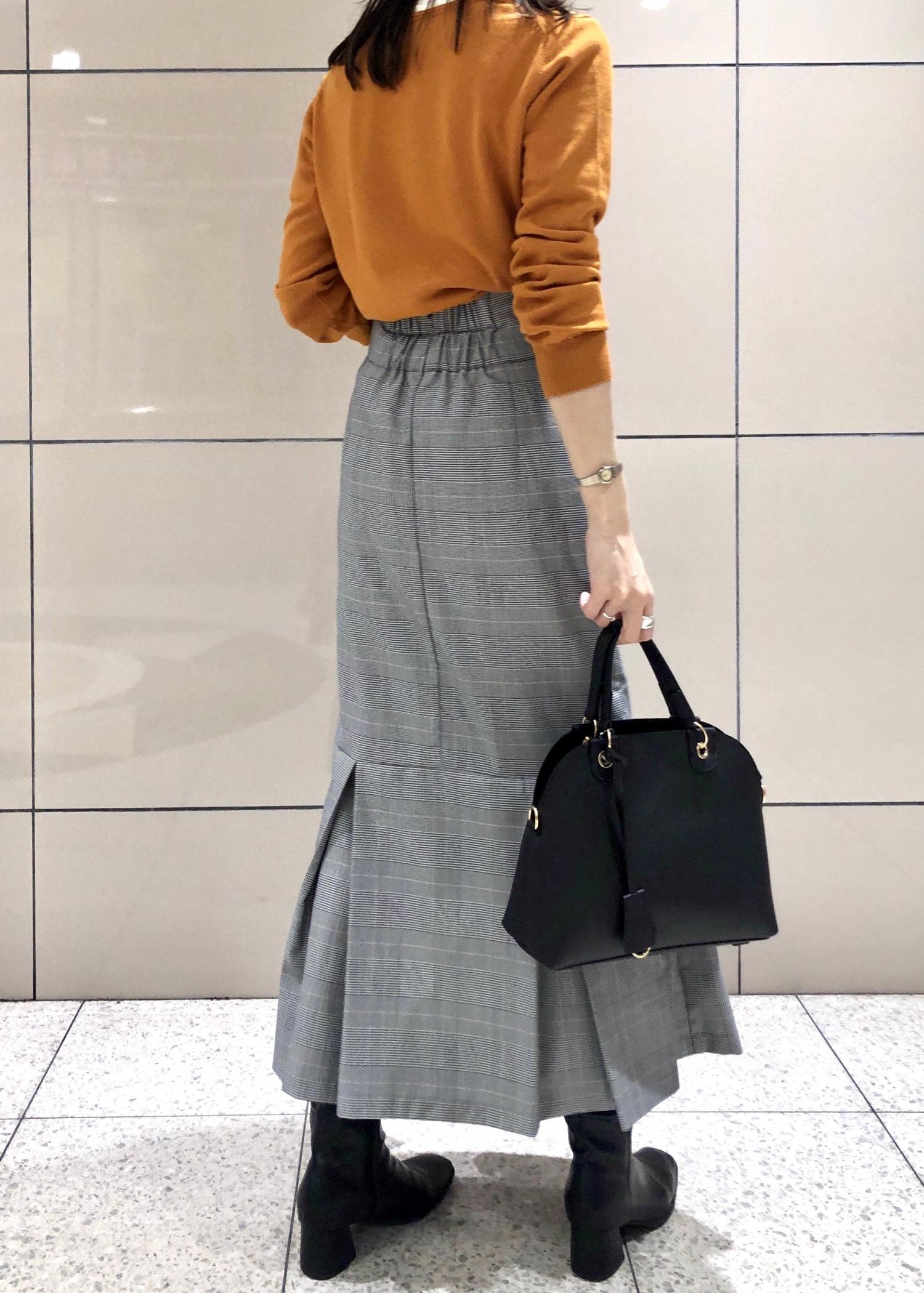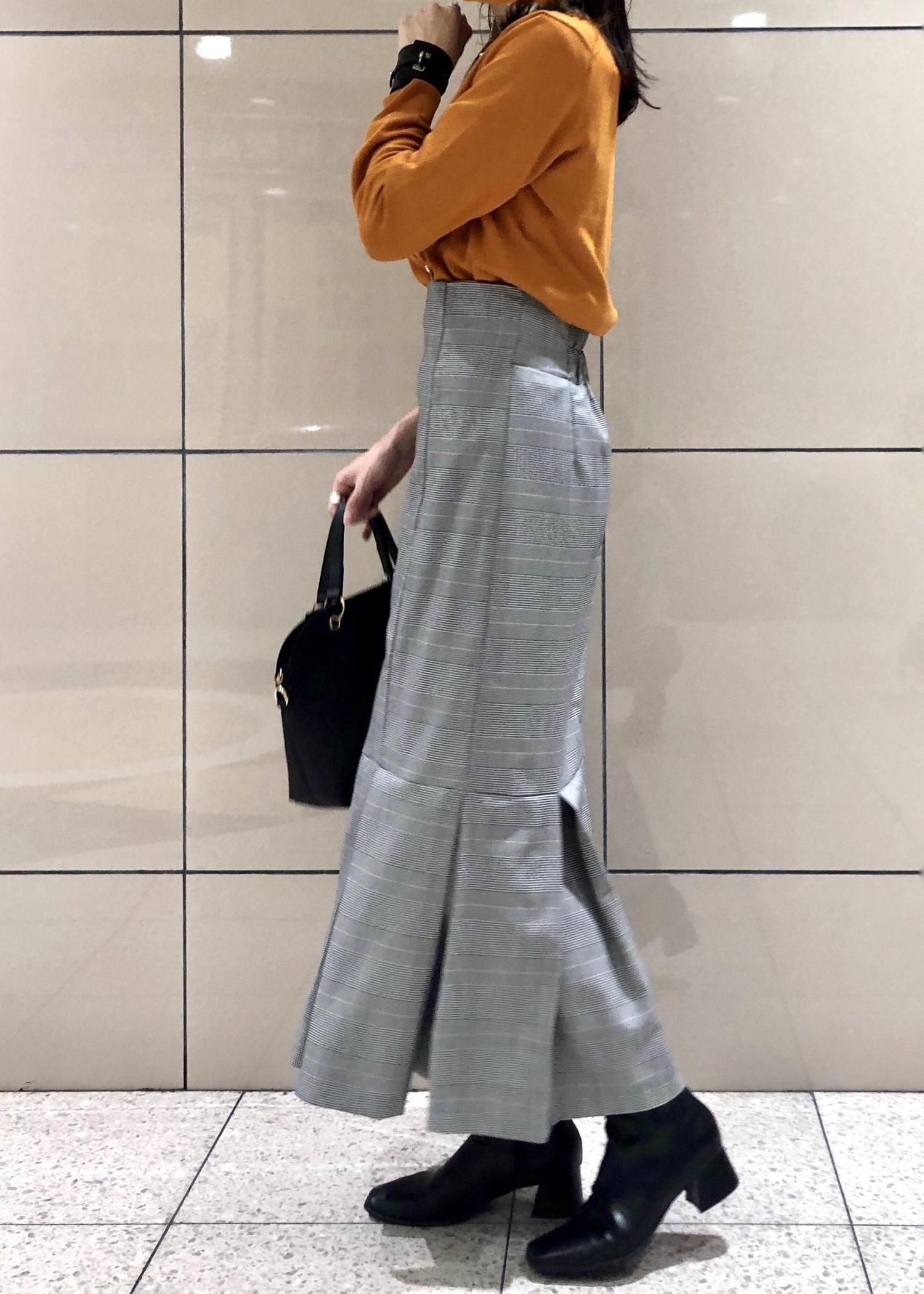 トレンド感あるマーメイドスカートは通勤にも使えるカラーをチョイス。