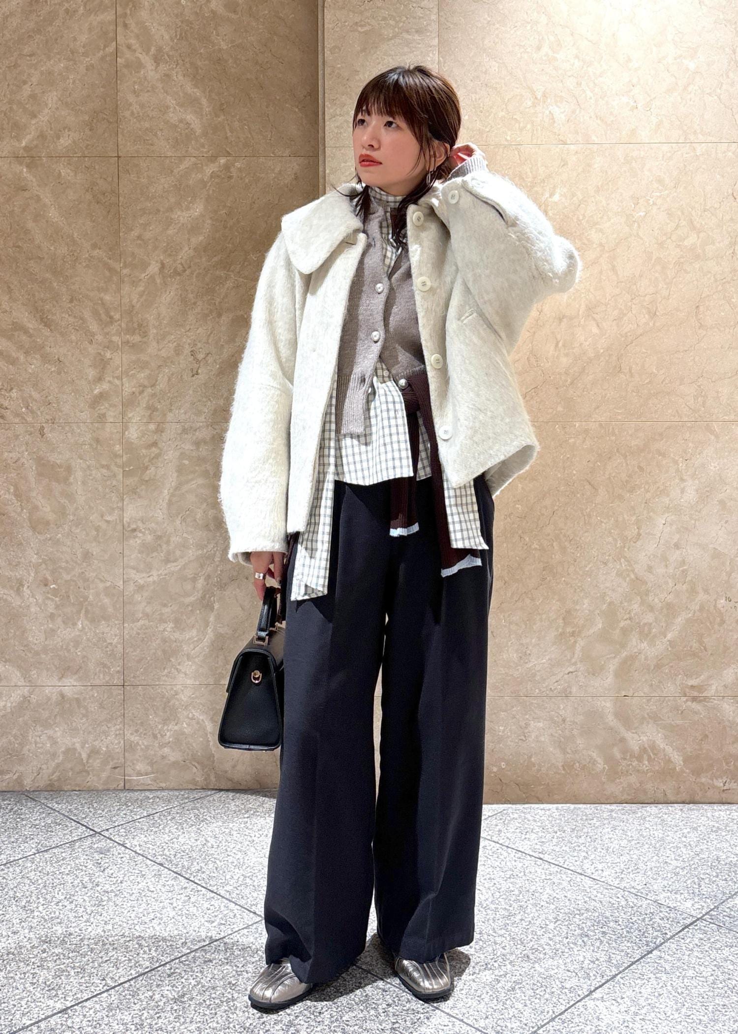トレンドデザインのブルオーバーとテーパードパンツを合わせた女性らしい綺麗目なコーディネートに!