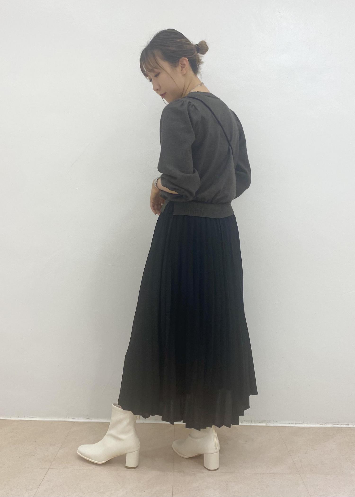 ダークカラーのワンピースは 足元をホワイトにするだけで一気に軽さが出ます◎ 秋冬らしいファーバッグも コーディネートのポイントです♡