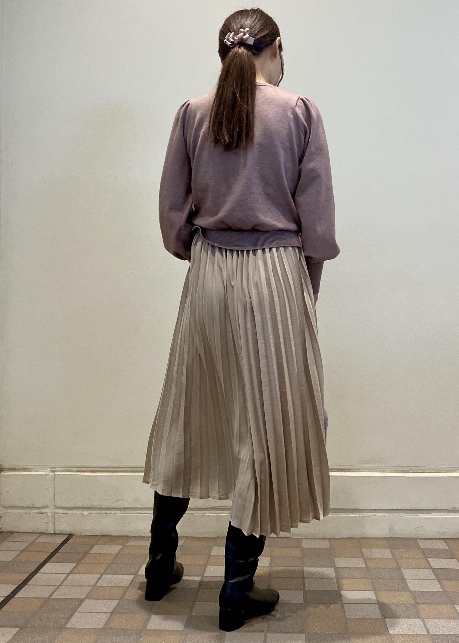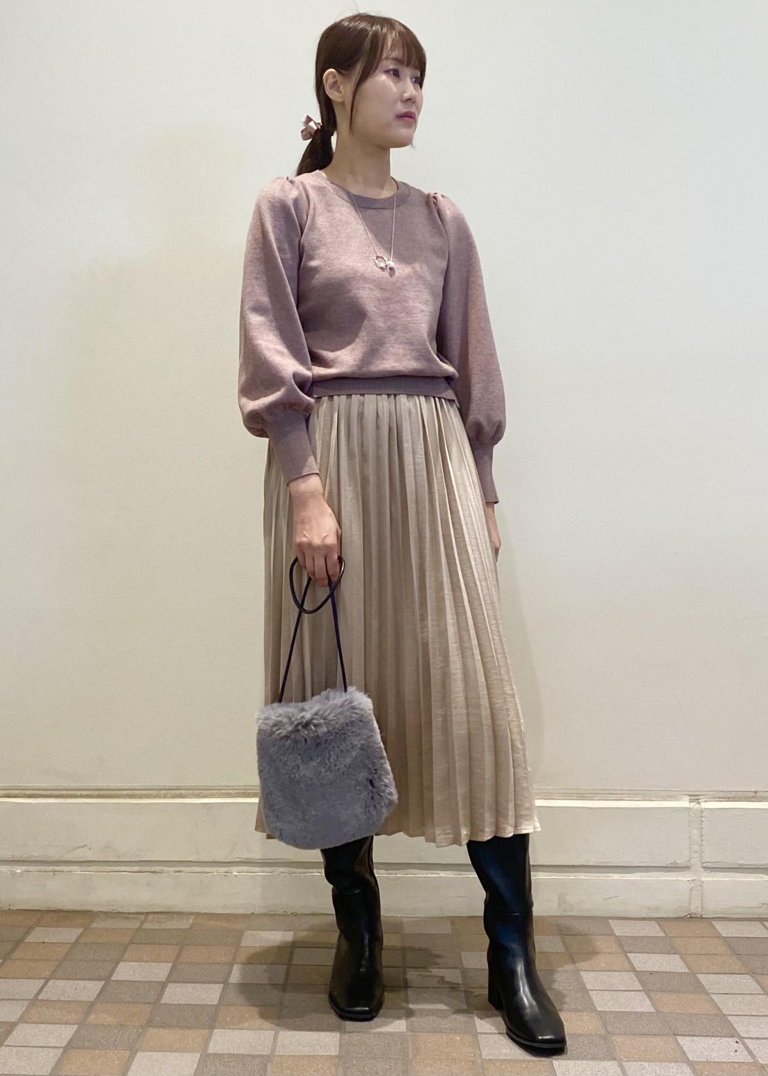 1枚でコーティングが叶う異素材ドッキング ワンピースです♡ きれいなラインのニットと光沢感のある プリーツスカートが上品な印象です。