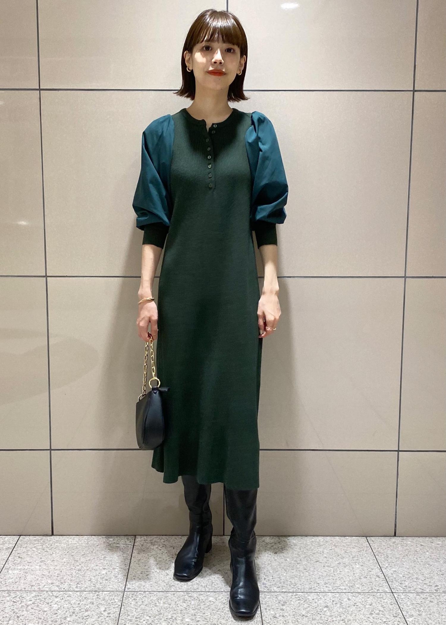 ニットワンピースとチェーンバックで綺麗めなきちんとコーデにしました☺︎