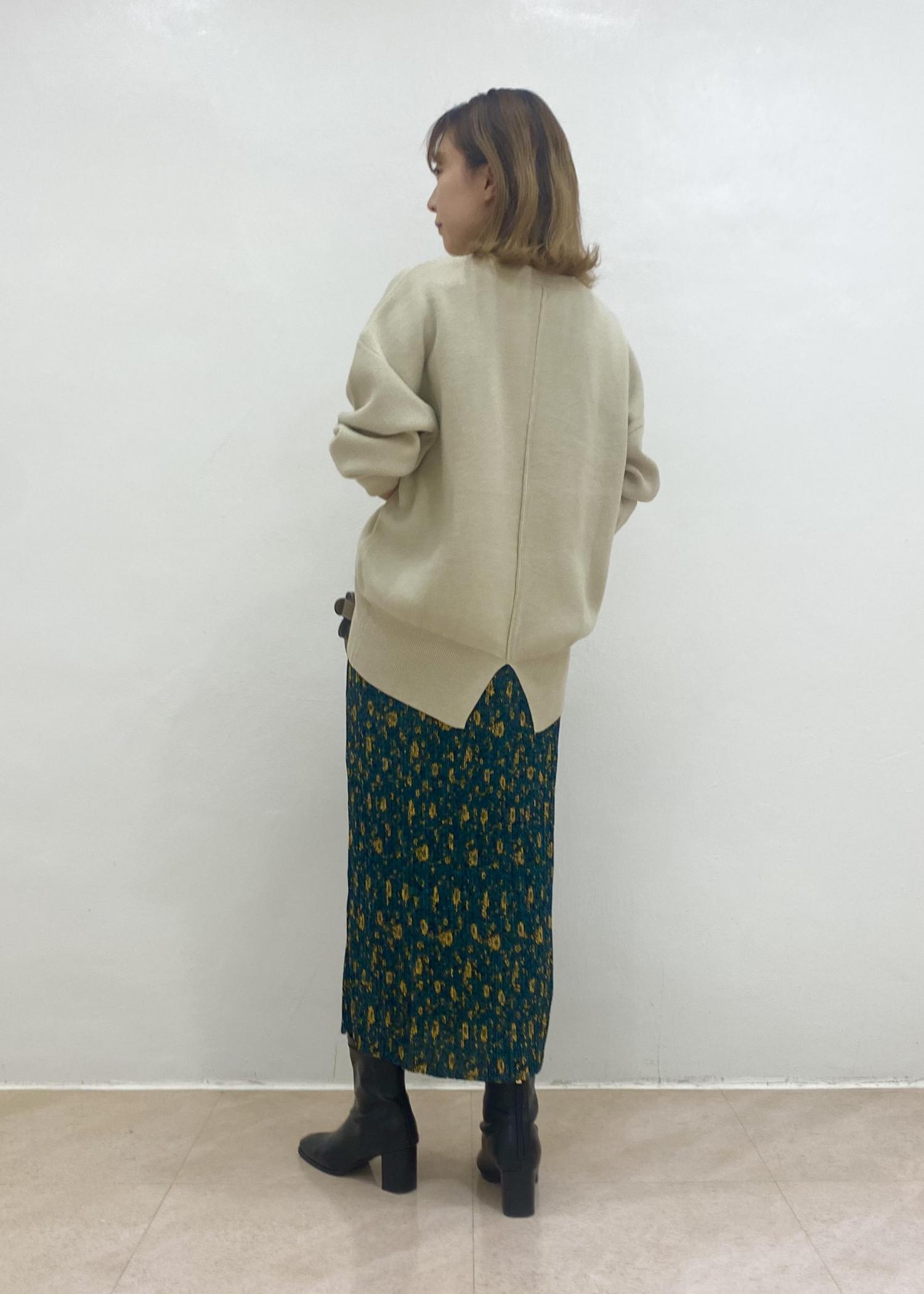 ゆったりめのニットにIラインのスカートの合わせはバランスも良く◎