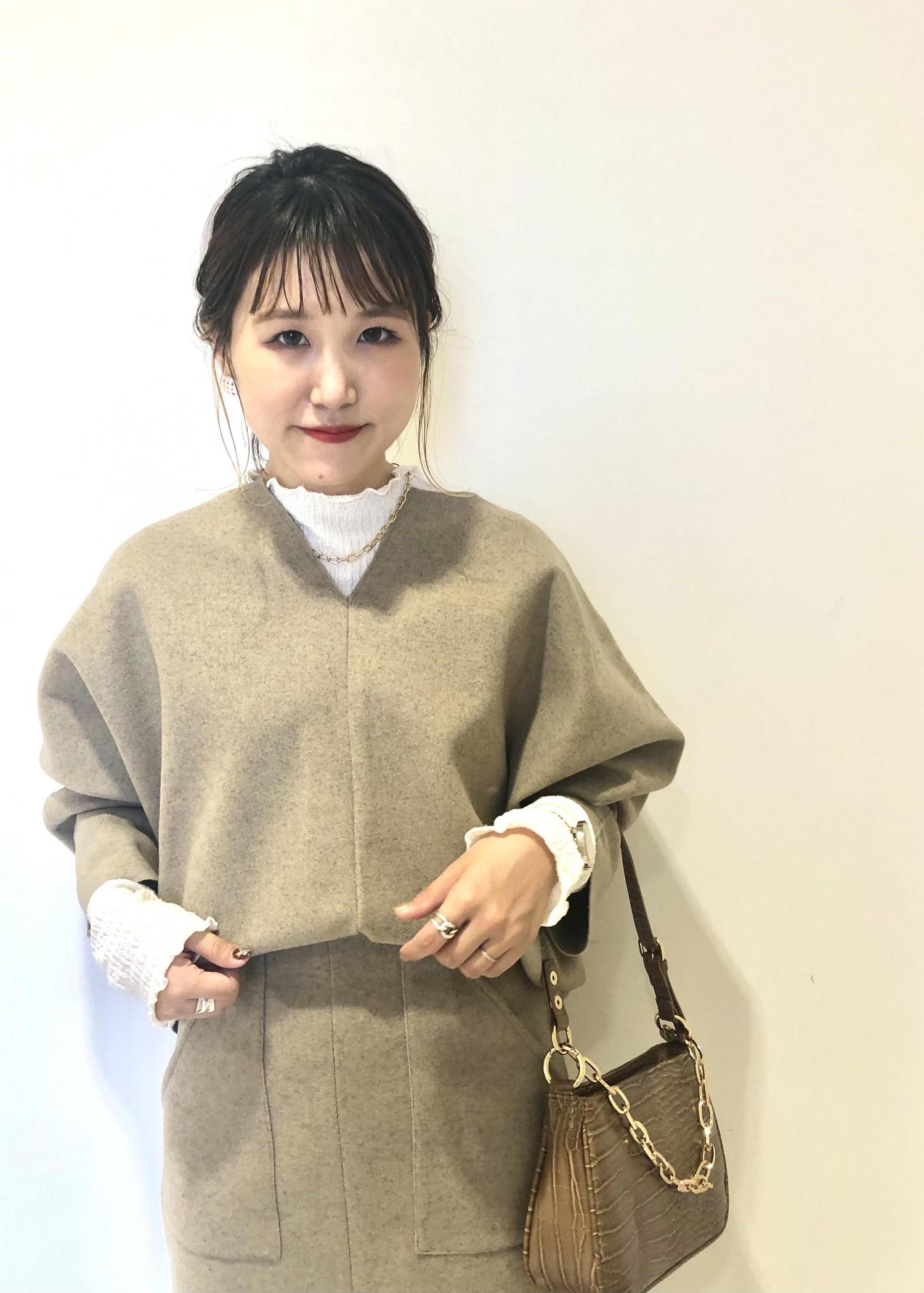 表面の生地感が可愛い圧縮ニットのセットアップです。