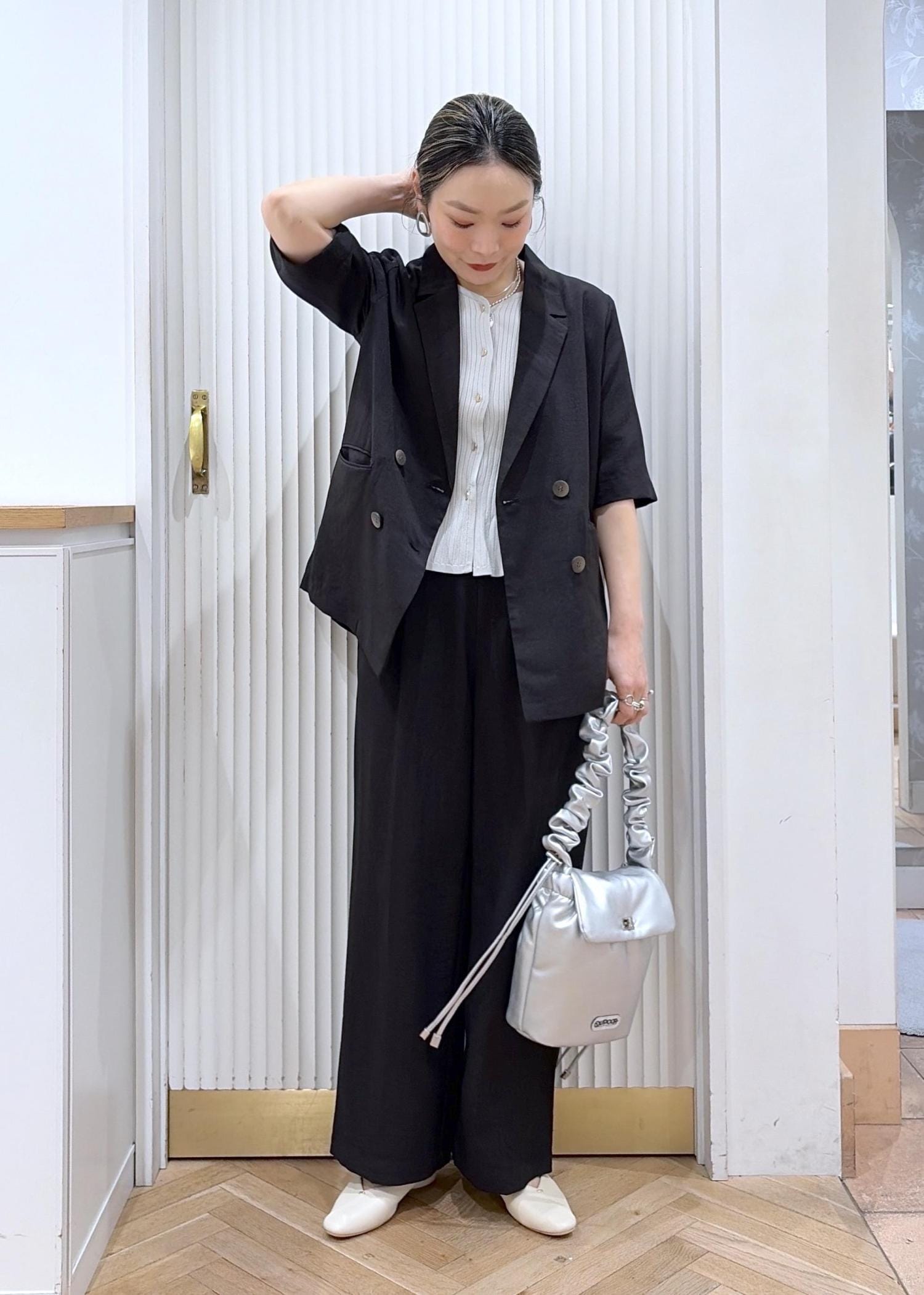 大人気のラク美パンツから冬にも映えそうなパステル調のカラーで新色が登場! レイヤードスタイル見えするトップス合わせで色のメリハリを効かせたコーデ