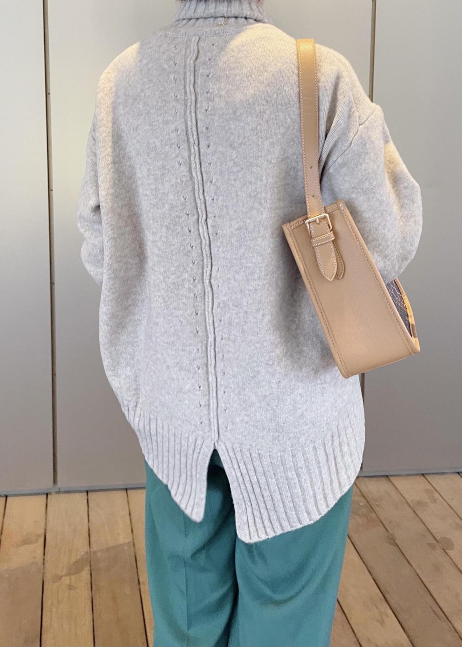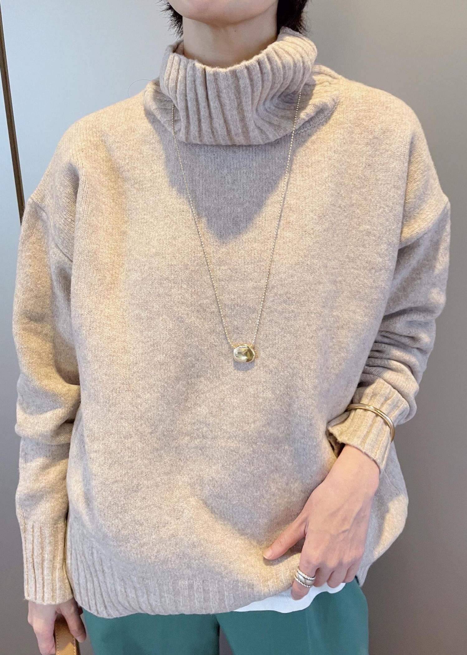星玲奈さんコラボのニットは着丈が選べる2種類ありますが、襟元を立てて着られるロング丈をチョイス。