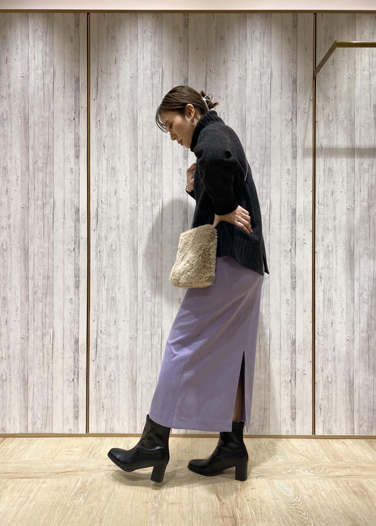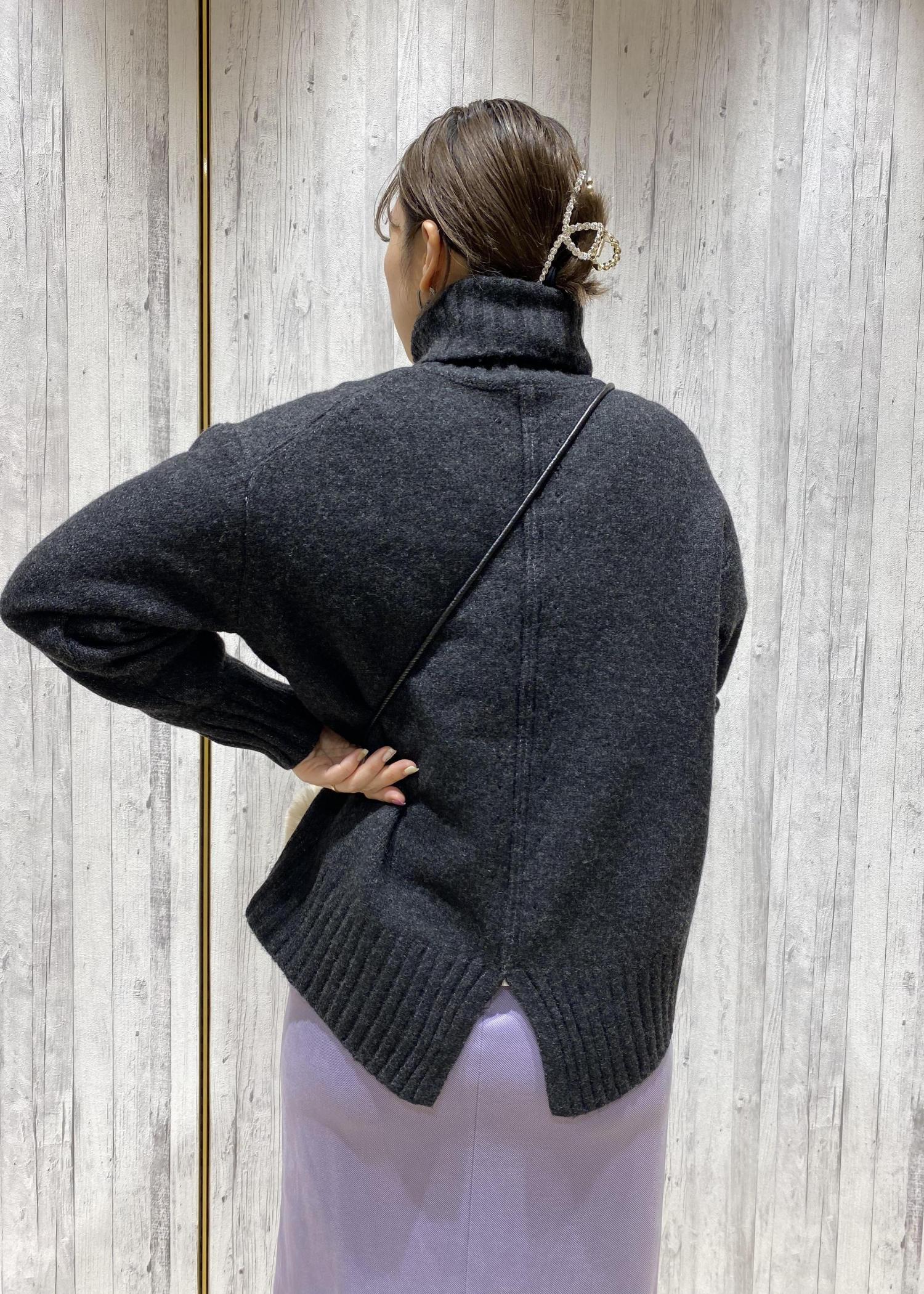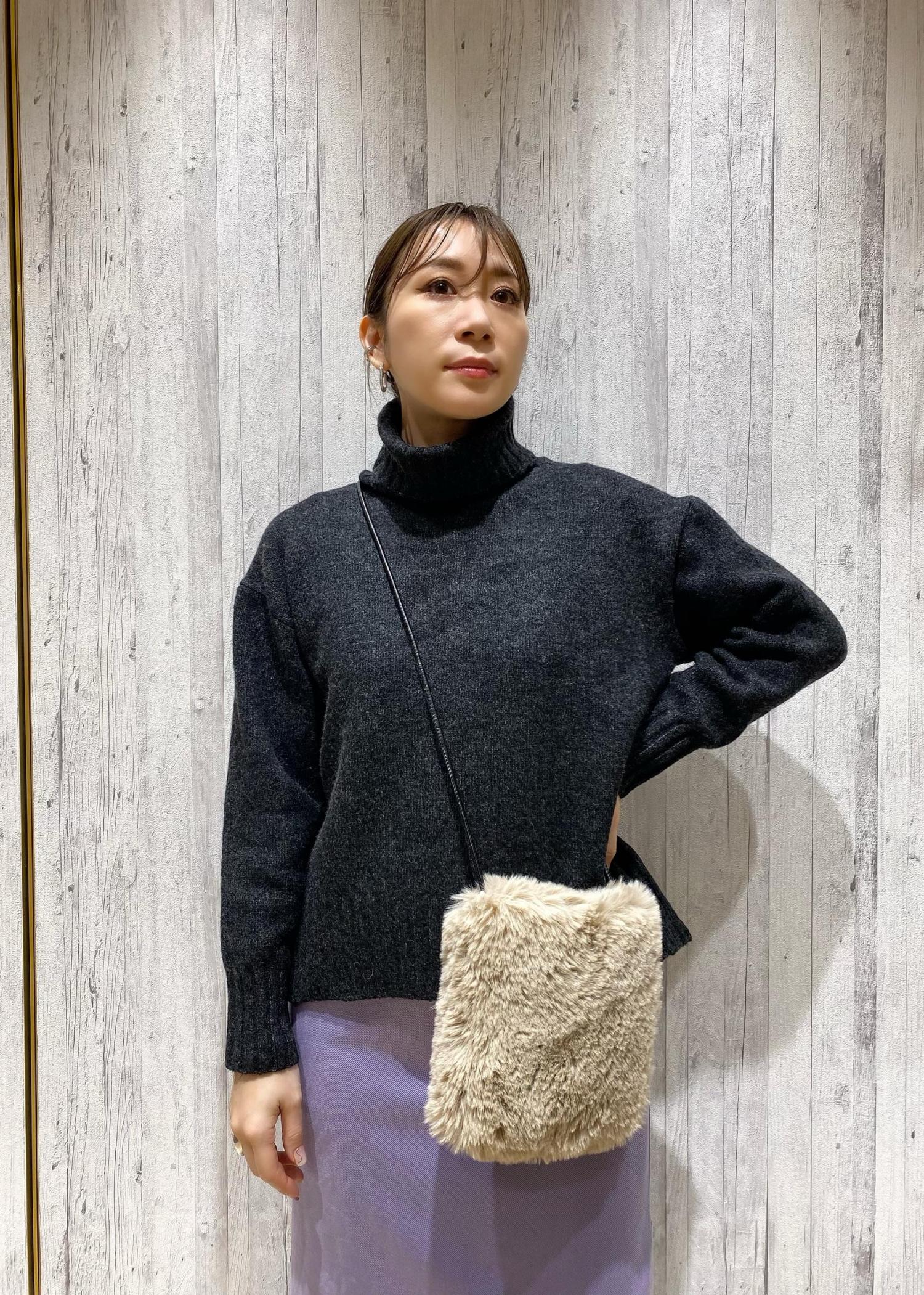 着丈の選べるニットトップスは短い方のFサイズ着用です。