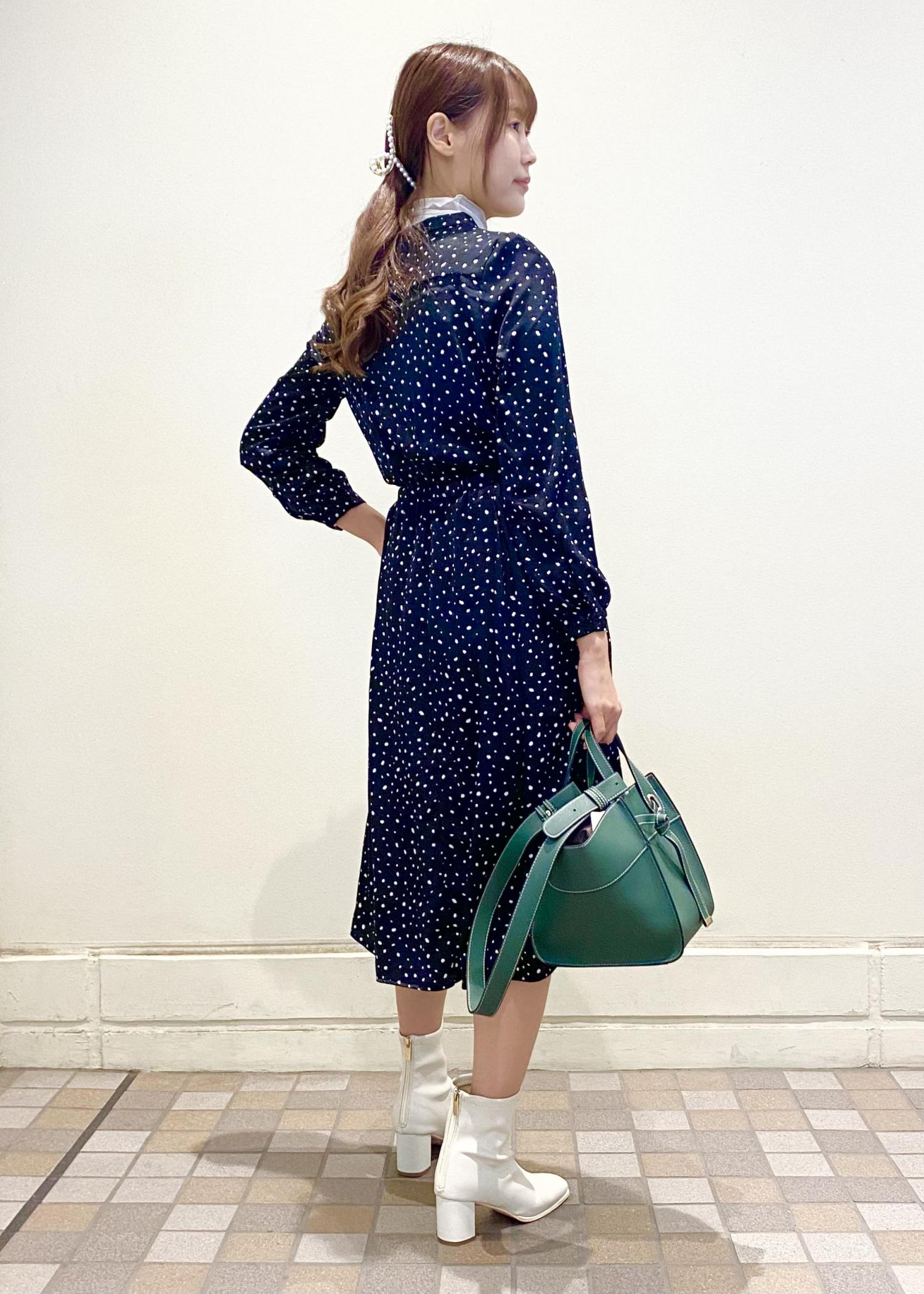程よい光沢感のある上品なワンピースにハイネック インナーを合わせて抜け感のある女性らしいコーデ にしました♪ウエストの位置が高めなのでスッキリと 着れます。 Instagramも更新中です♡ @VIS_tamatera