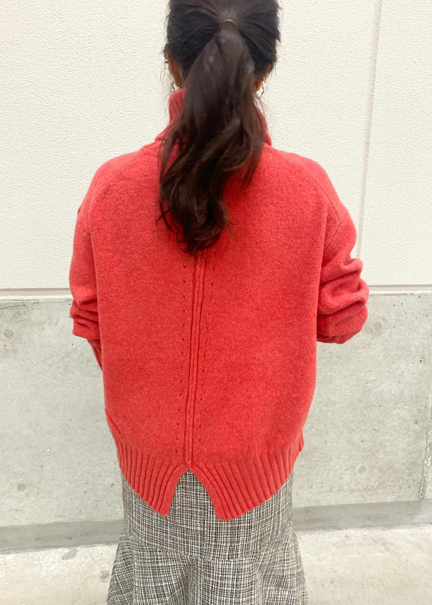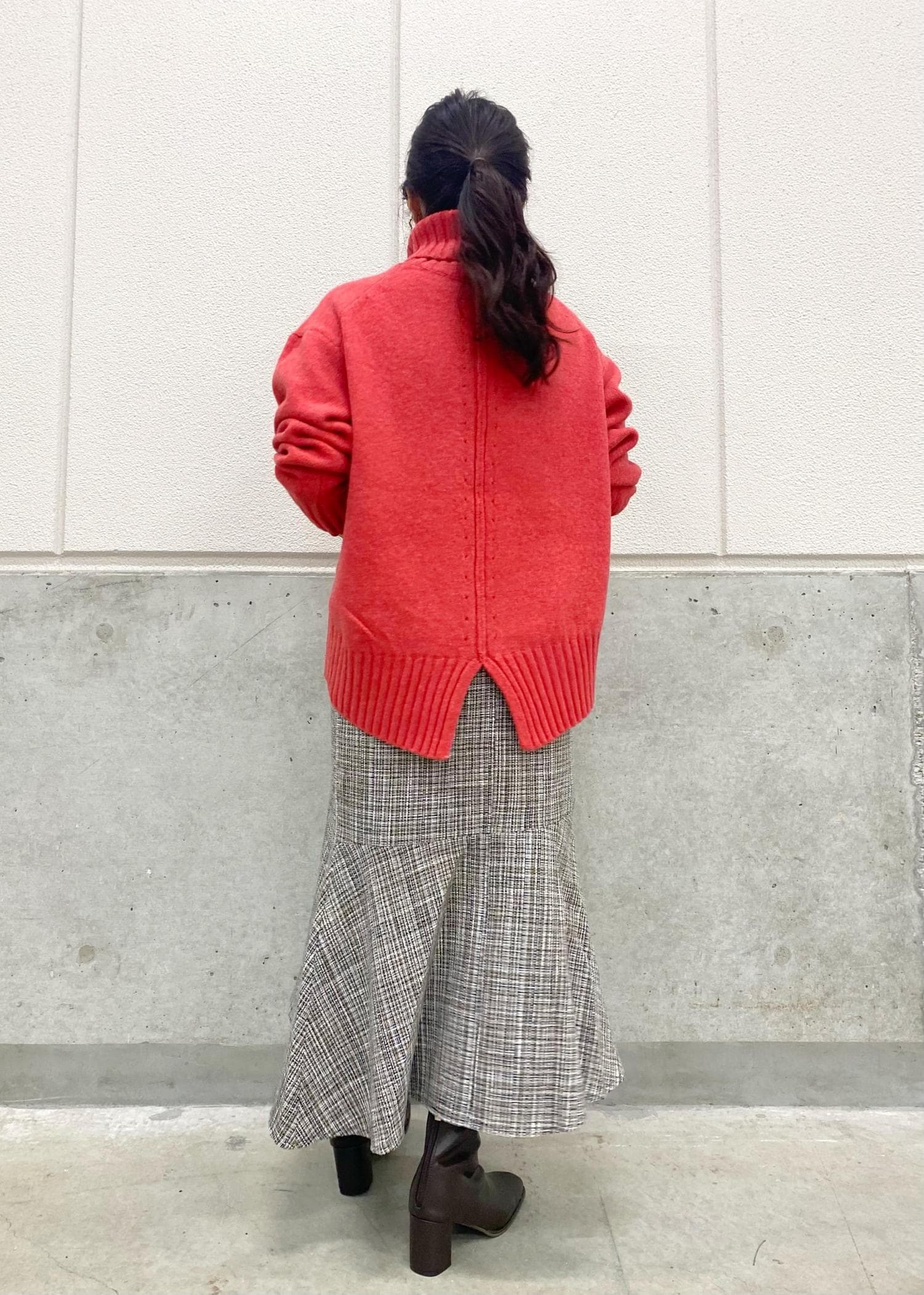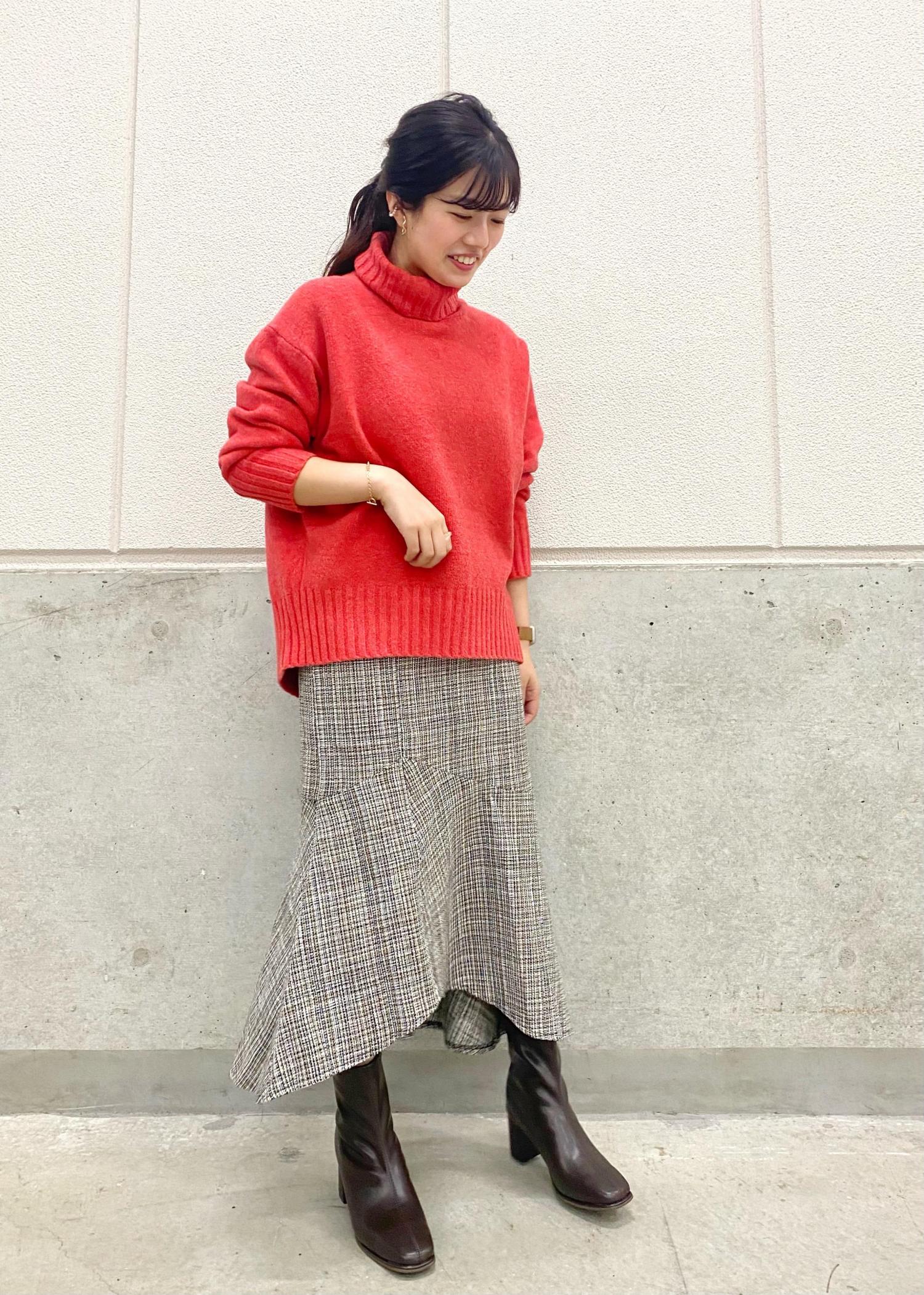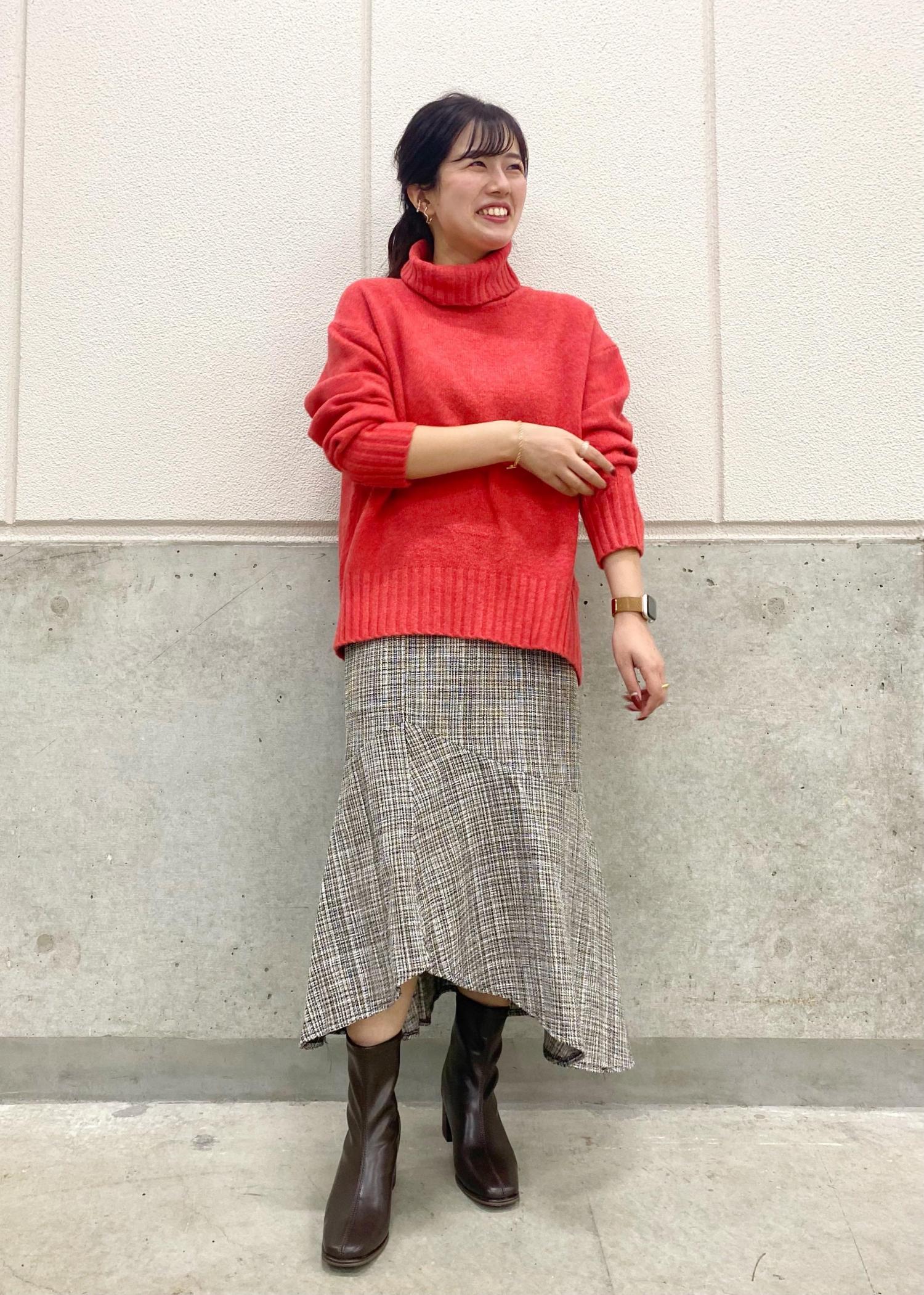 カラーニットをメインに暖色系で統一感のあるコーディネートにしました!