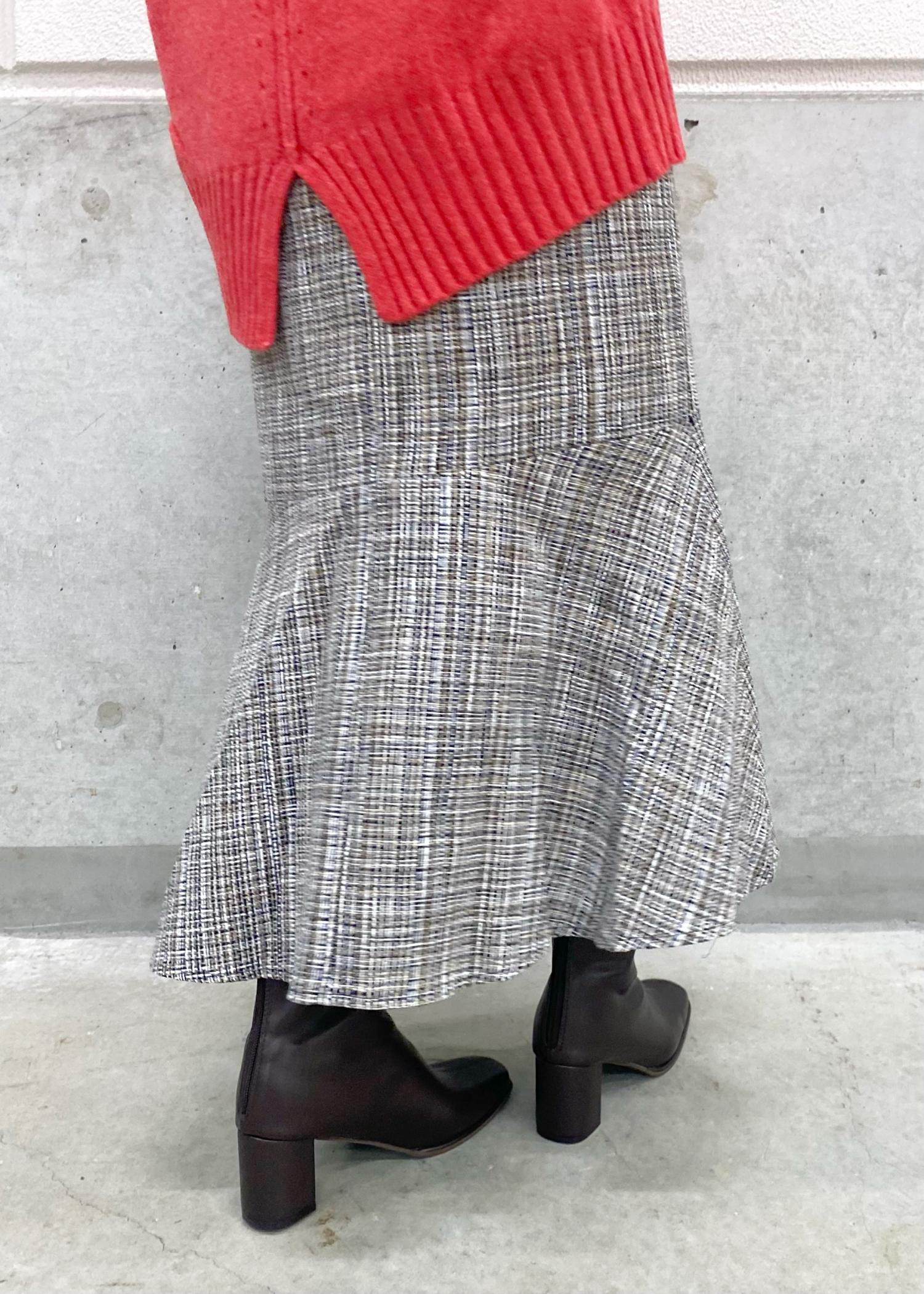 ベージュやホワイトの糸も使われたツイード生地になっておりカチッとし過ぎず、