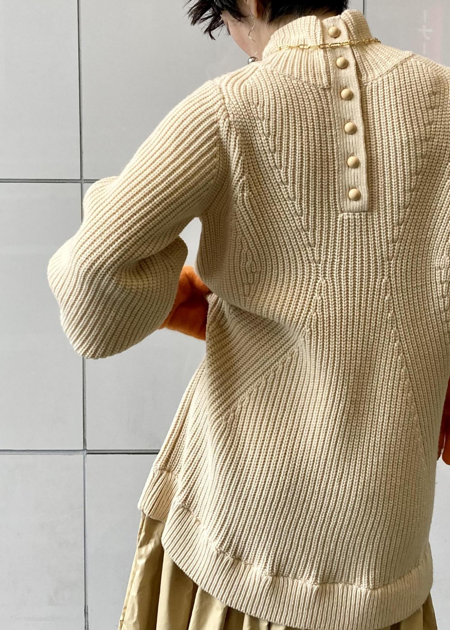 袖口・後襟部分のボタンを外して折り返したり、シアータートルをレイヤードしたり。