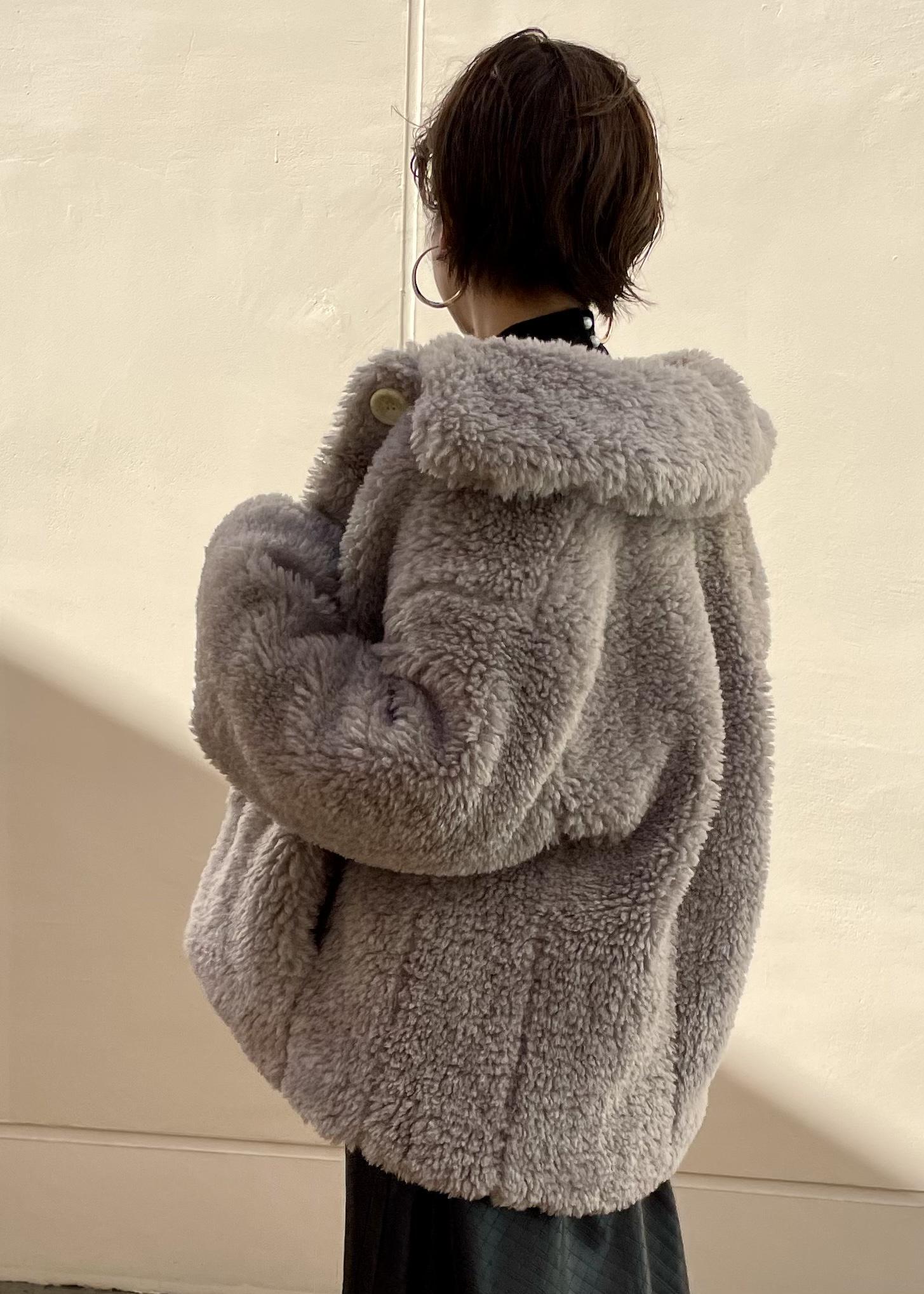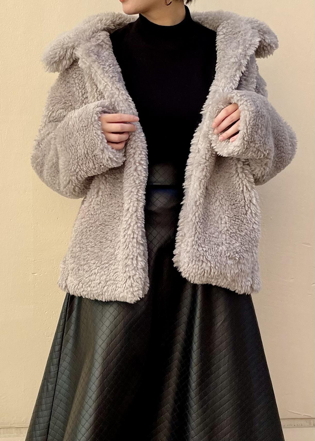 もこもこのボリューム感が可愛いボアブルゾンを甘くなりすぎないように、ブラックと合わせてモードな印象にしました。 ボリュームがあるので、ヘアアレンジはロングの方はスッキリさせるのはオススメです!