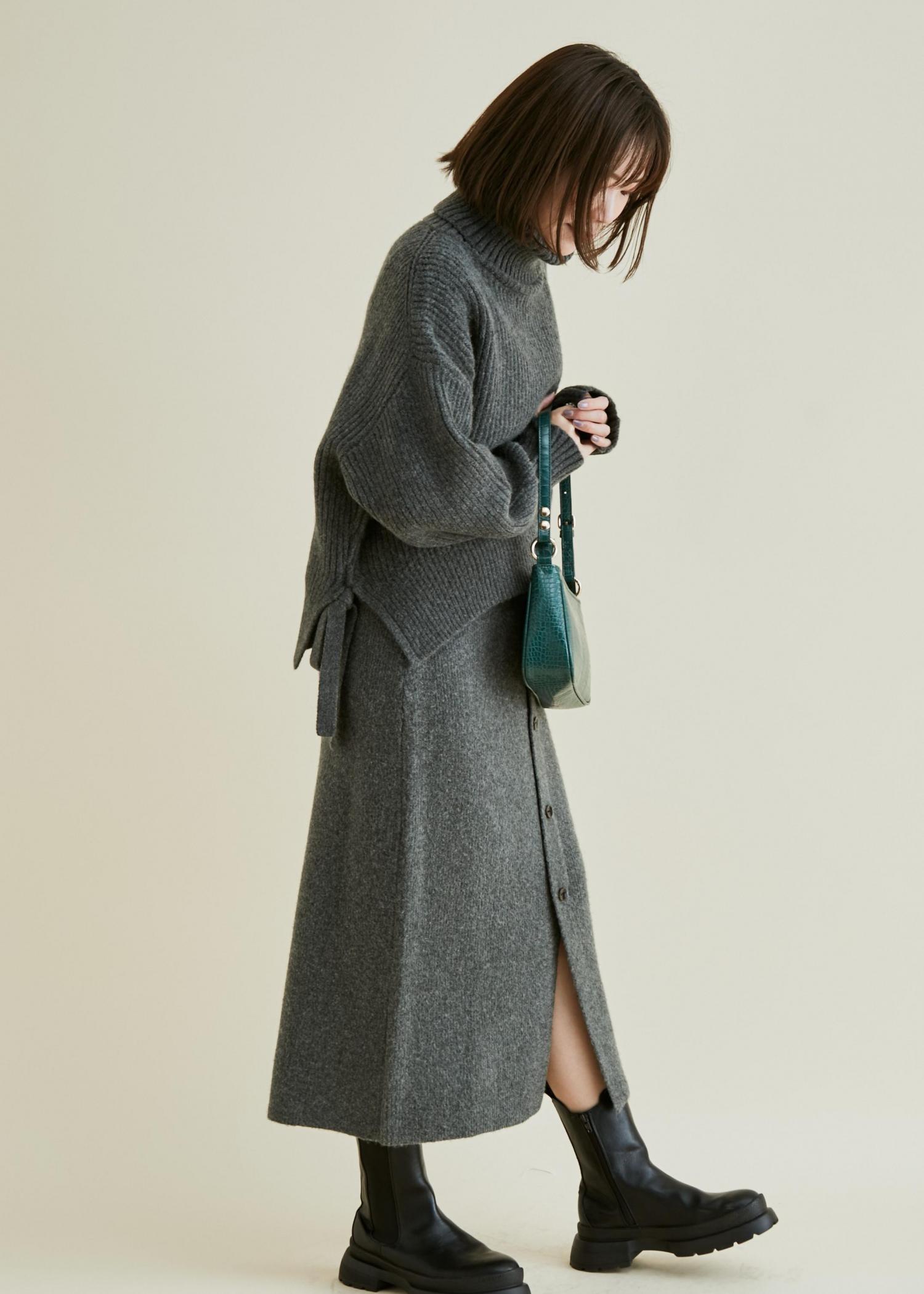 ウール混で暖かなセットアップ◎ ニット×スカートで大人な印象に。 ニットはサイドリボン付きでパンツに前だけINしても可愛いです! カジュアルにもデートにも使えるおすすめアイテムです♪
