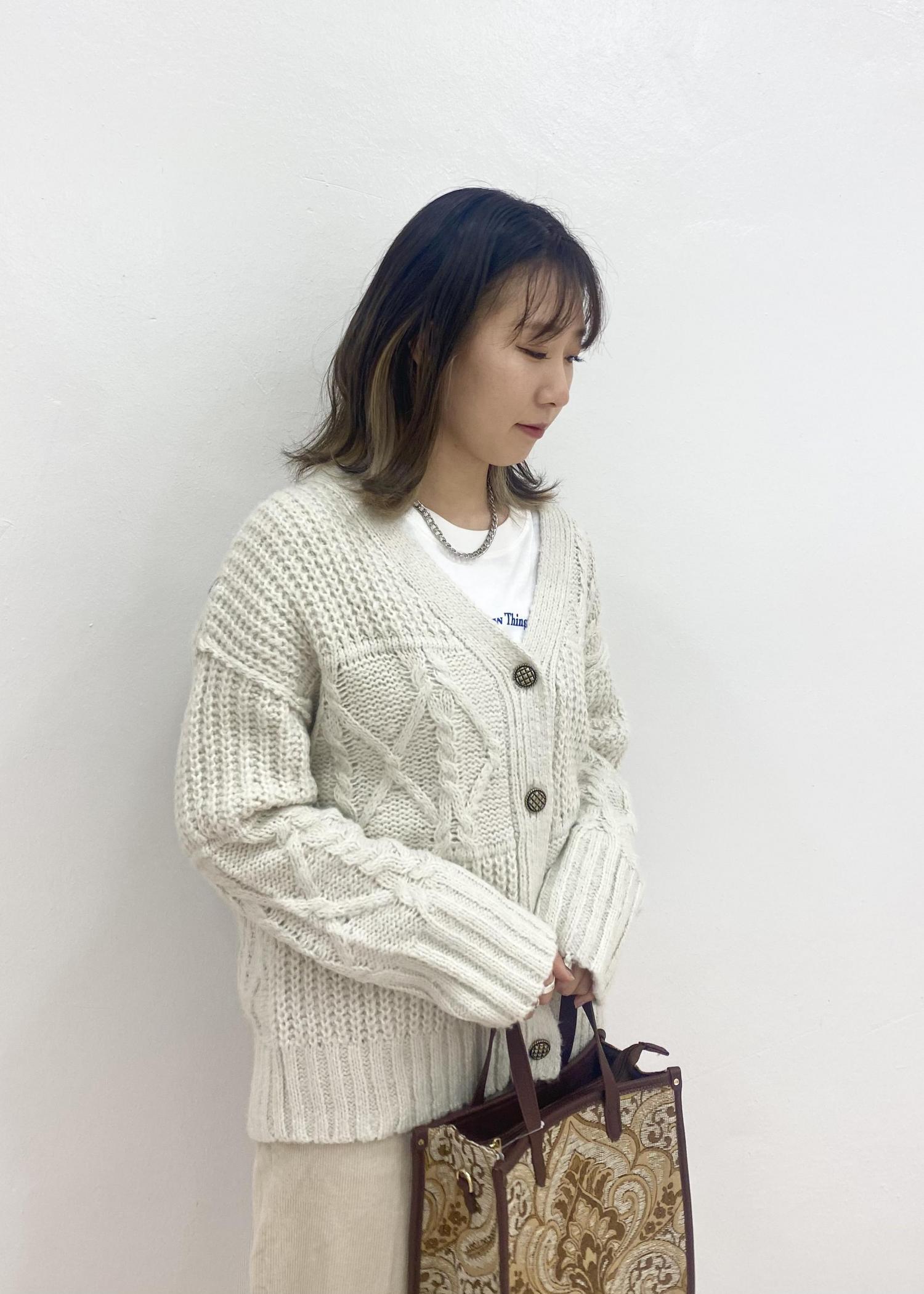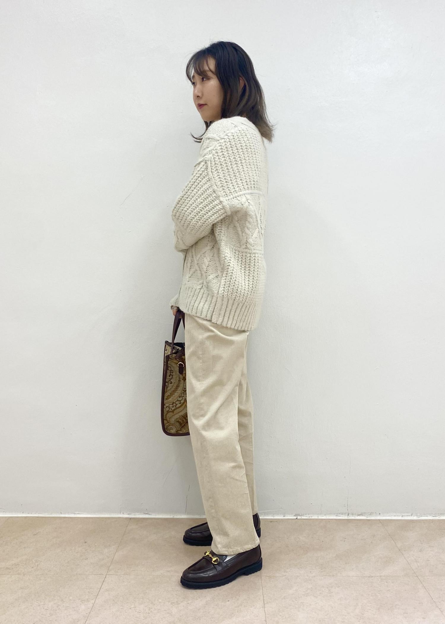 冬のオールホワイトは目を引くこと間違いなし! アラベスク柄のバッグも コーディネートのポイントです☺︎