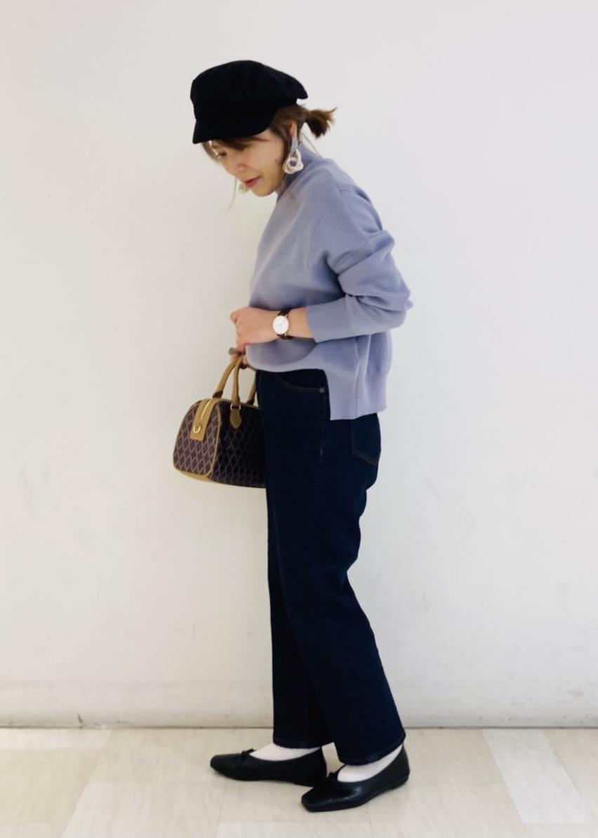 カラーニットやテーパードデニムを合わせて大人カジュアルコーデにしました♪