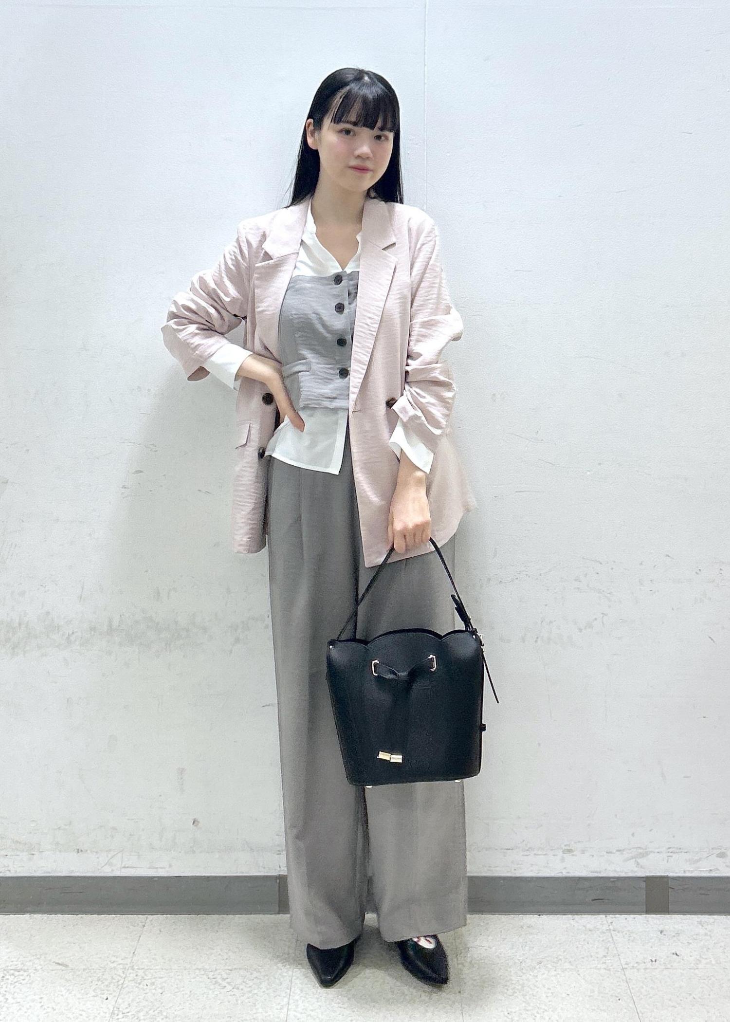 短丈のカーディガンにチェックのタイトスカートでコンパクトにまとめました! 襟付きがレトロなカーディガンは前を閉めてトップスとして着てみました! 春まで使えるアイテムです!