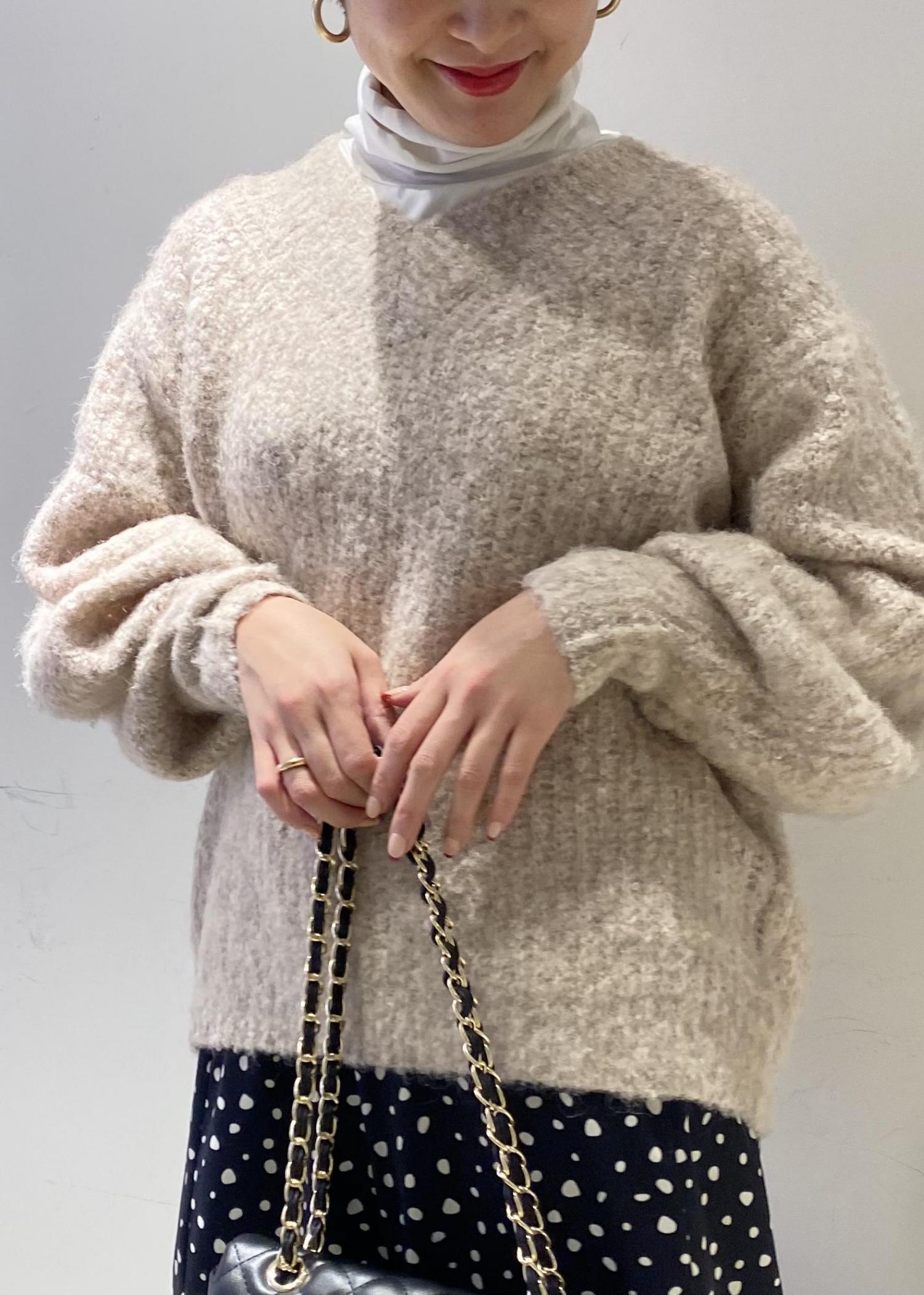 メランジニットは風合いが柔らかく、軽くて暖かいです◎ マーメイドスカートやレザースカートとの合わせが オススメです! パンツスタイルが多い方は、デニムにロングブーツをインしてクールなコーディネートも楽しんでみて下さい!