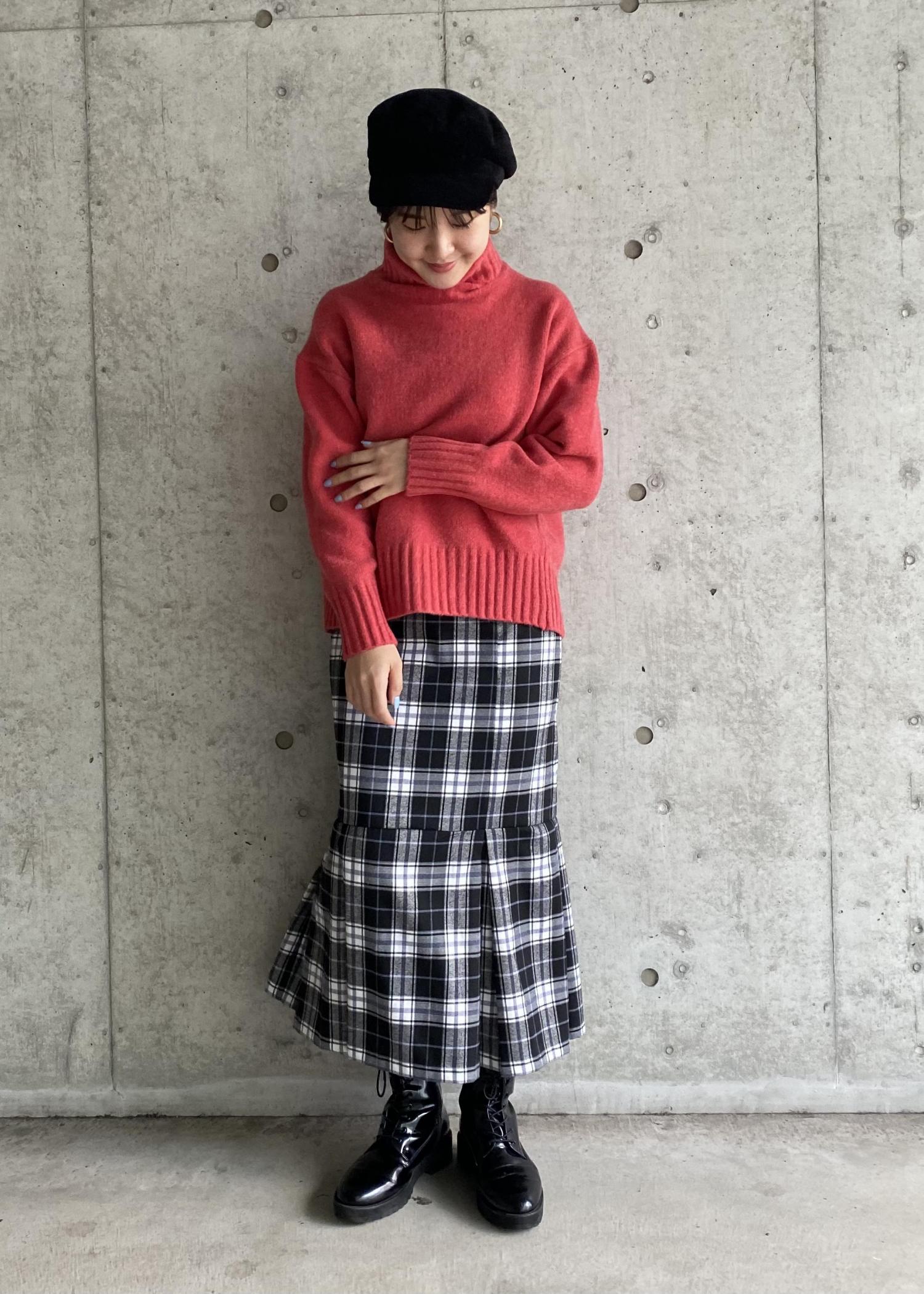 大きめのチェックがポイントで今年らしくカラーニットと合わせていただくのがお勧めです。
