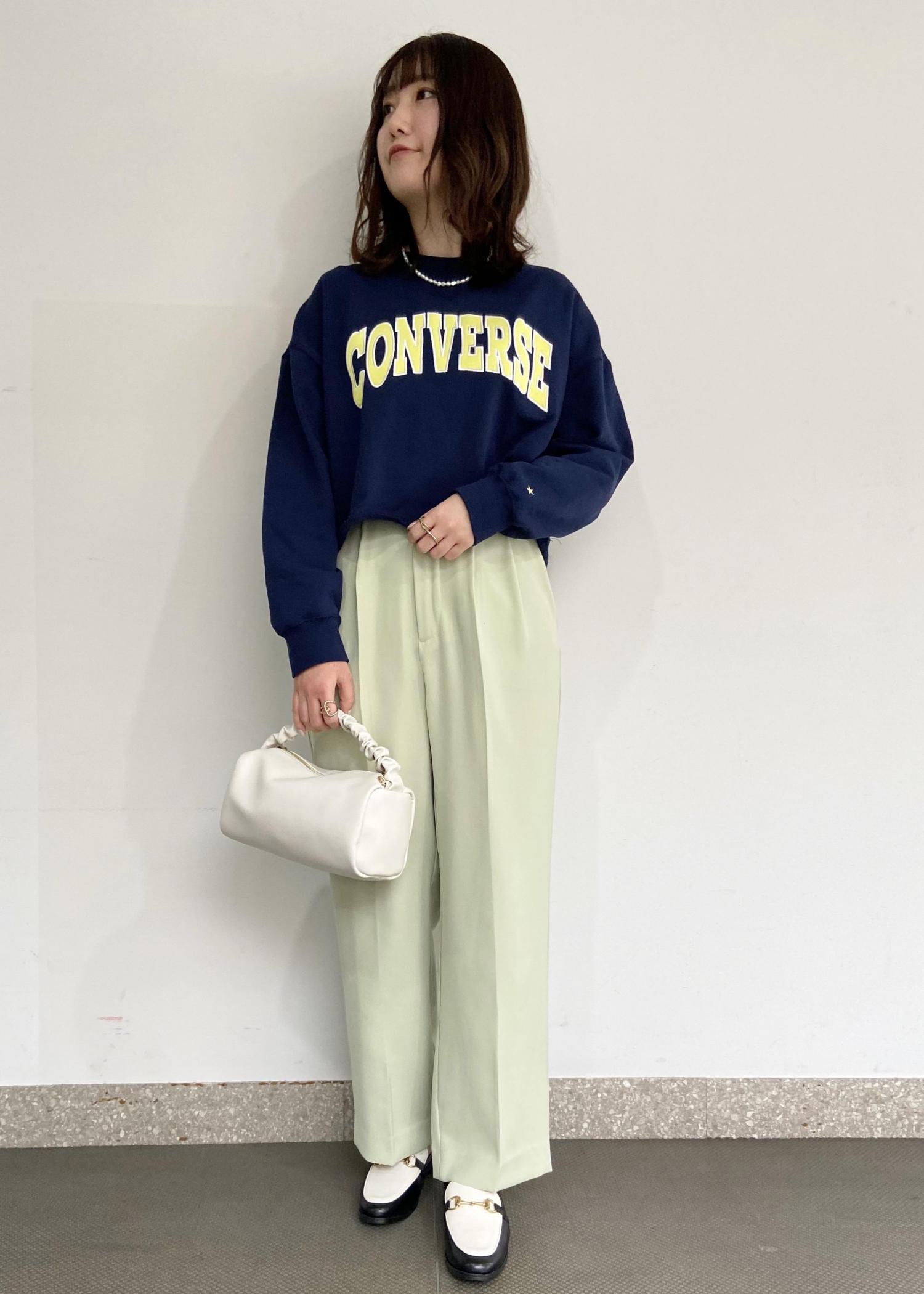 毎回大人気のCONVERSE別注☆ インパクトのある刺繍アップリケは、 コーディネートのアクセントに! カラーパンツと合わせて 春らしい爽やかなスタイリングに仕上げました。 Instagram ▷ @vis_wingkamioooka
