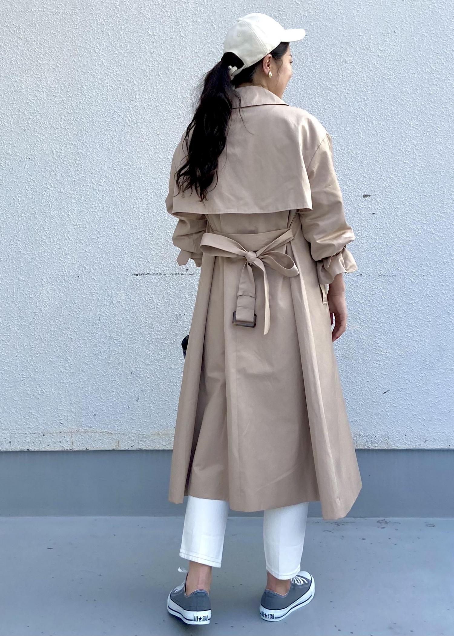 ポロ風のトップスとホワイトデニムで合わせて アクティブな印象を意識しました。 トレンチコートを羽織ると大人カジュアルに 仕上がります☺︎ トレンチコートはオンオフどちらでも 活躍できるので、1枚は持っておきたい おすすめアイテムです♪