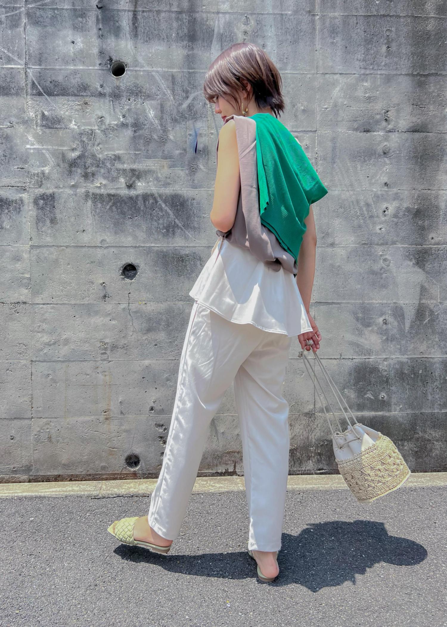 ベーシックになりがちなベージュ×キナリにもカラーカーデでワンポイント入れることでおしゃれ度UPしますよ☆
