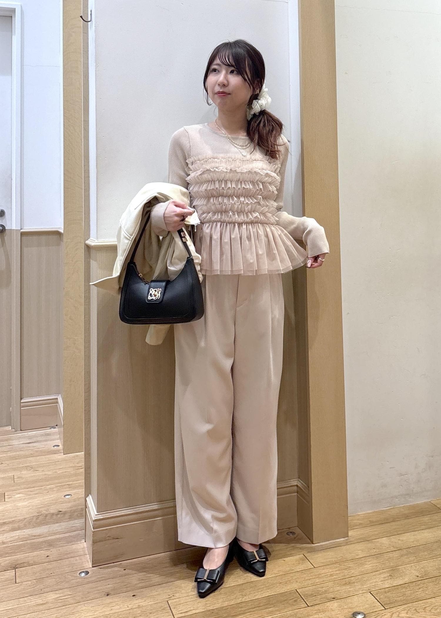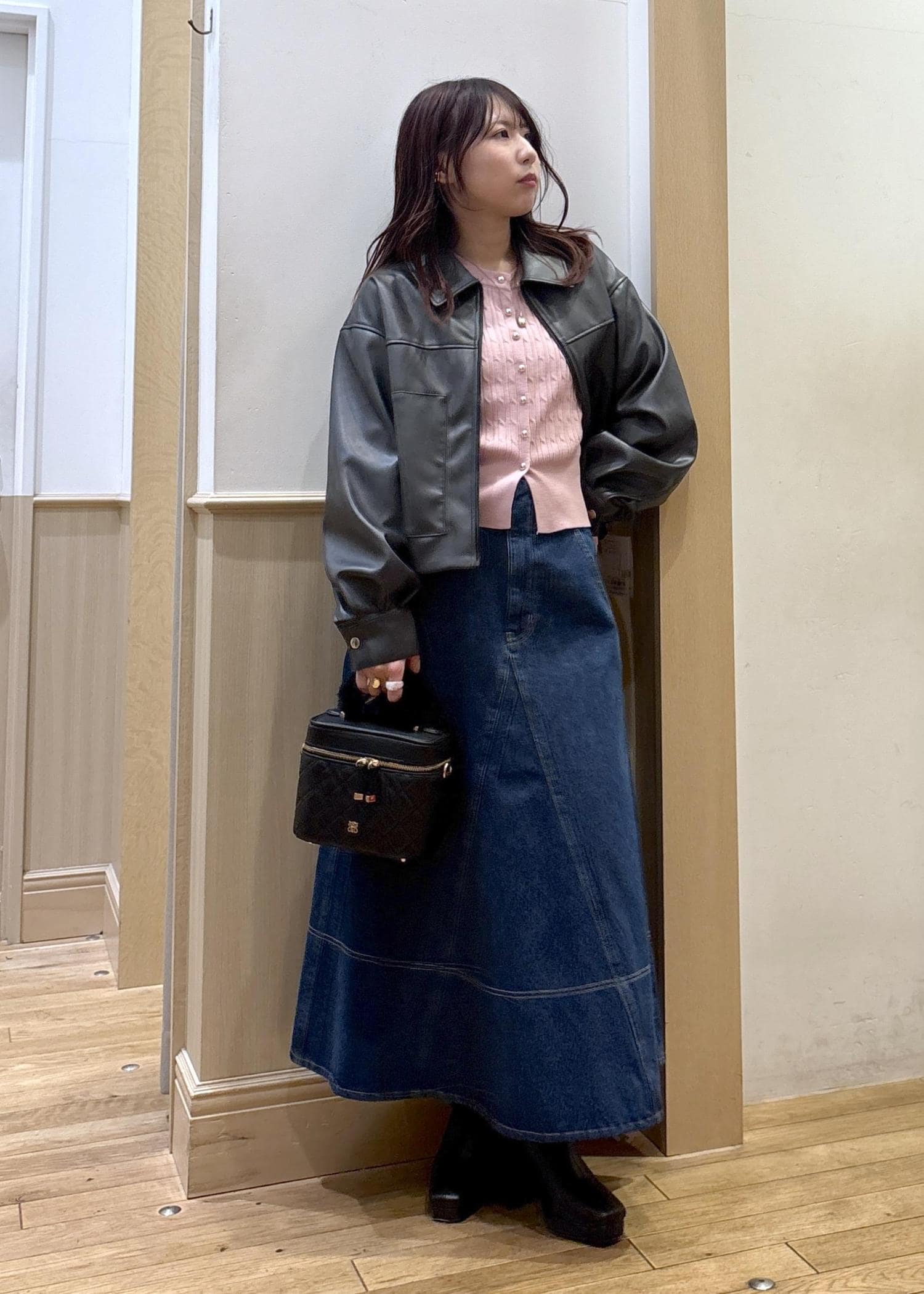 身長155㎝でも縦長効果でスッキリ見えするので合わせやすいですよ。