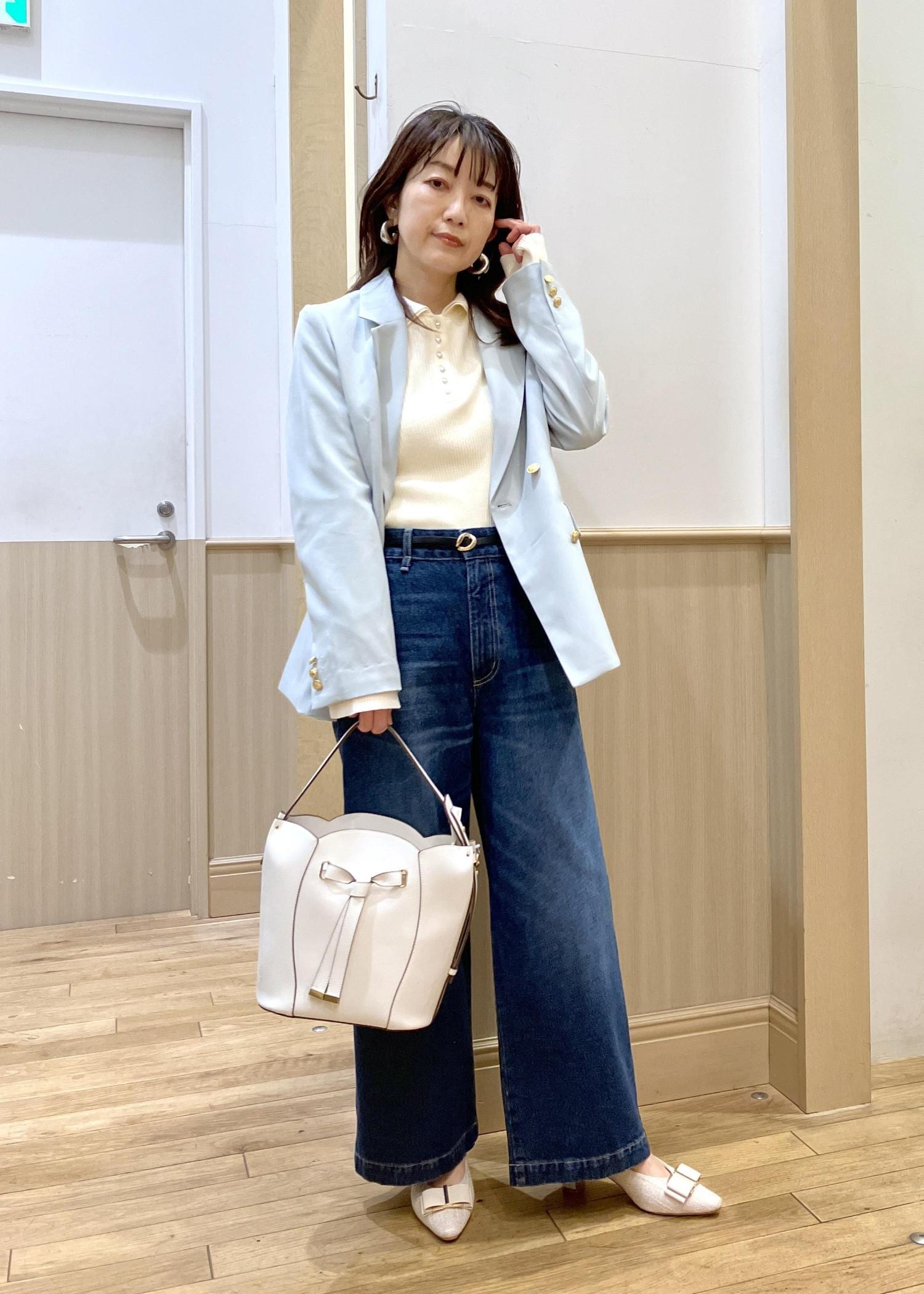 カゴbagでナチュラルに抜け感をプラスしたのもポイントです。