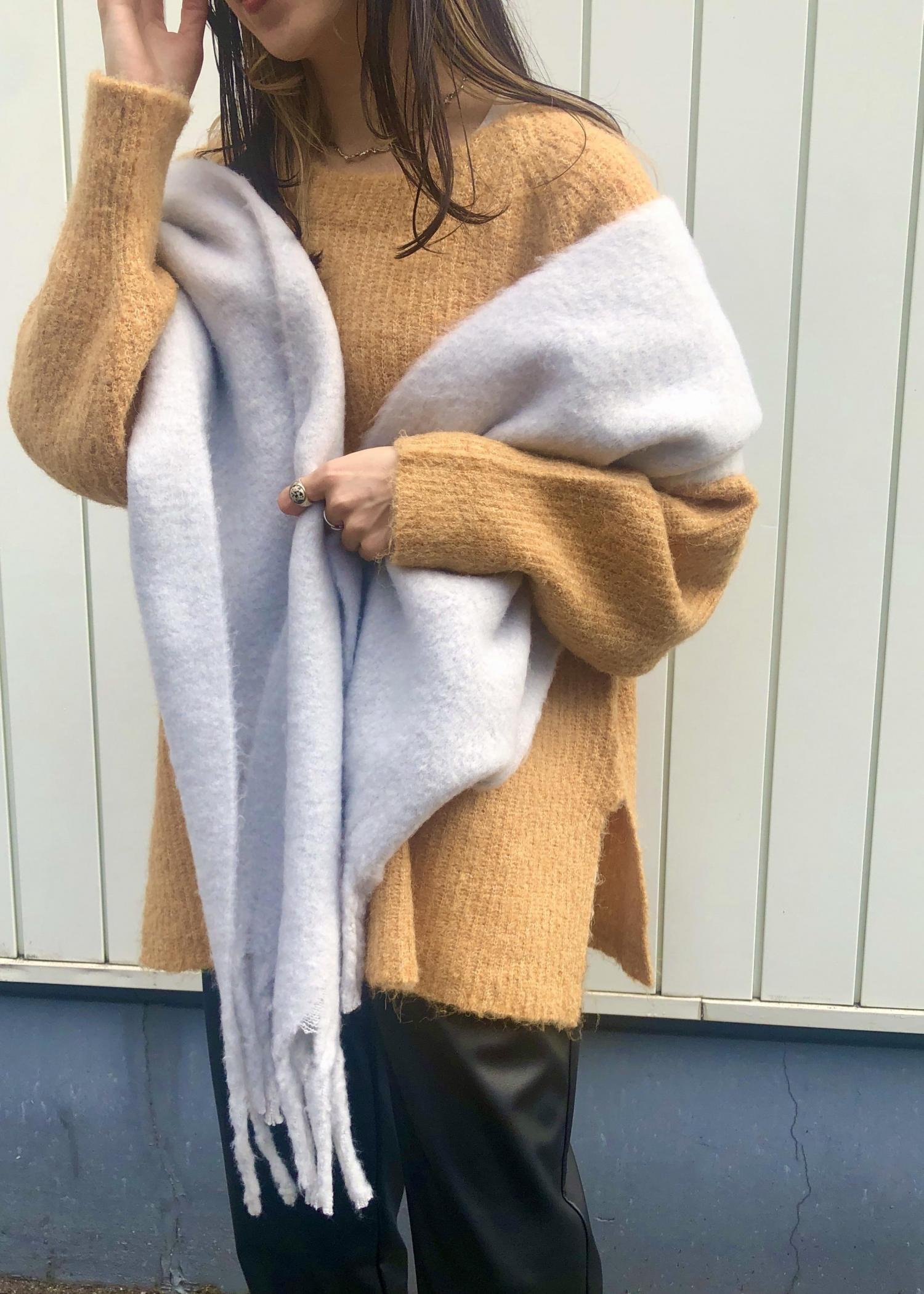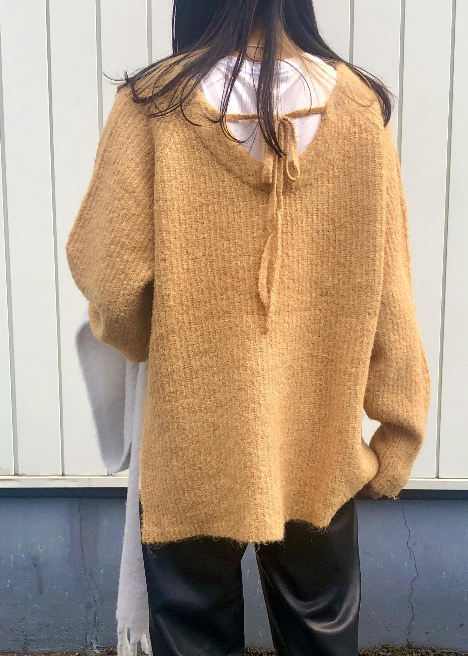 後ろのデザインとふんわりした素材が冬らしいニット。
