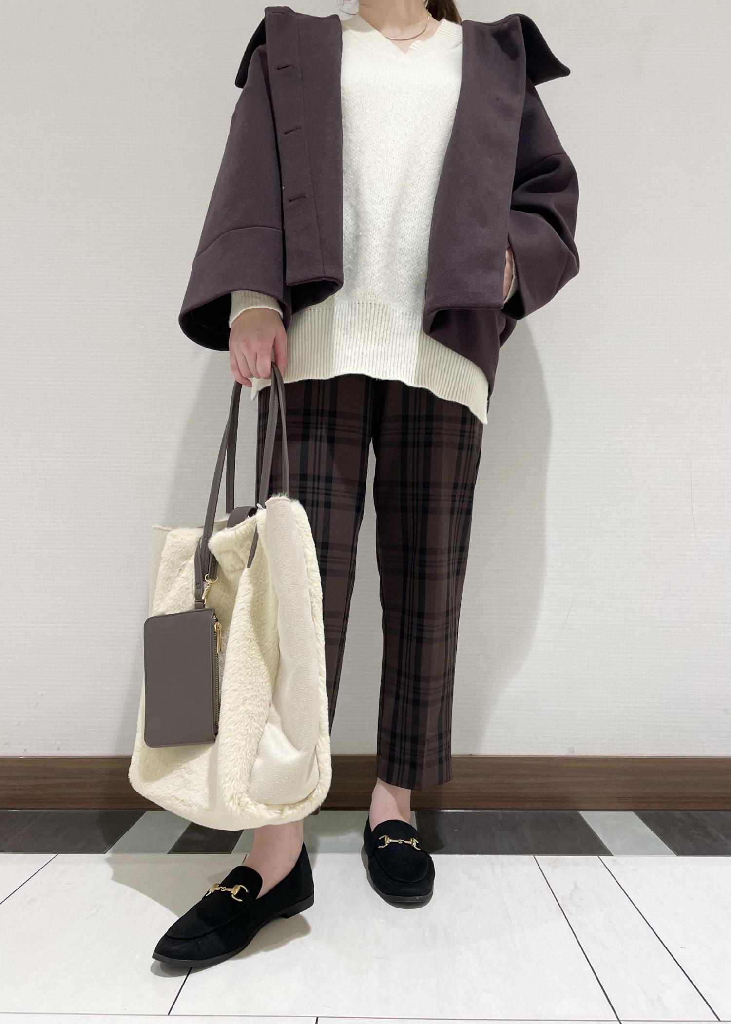 立体的なコクーンシルエットがかわいいショートコートを羽織りカジュアルすぎない大人コーデに☺︎