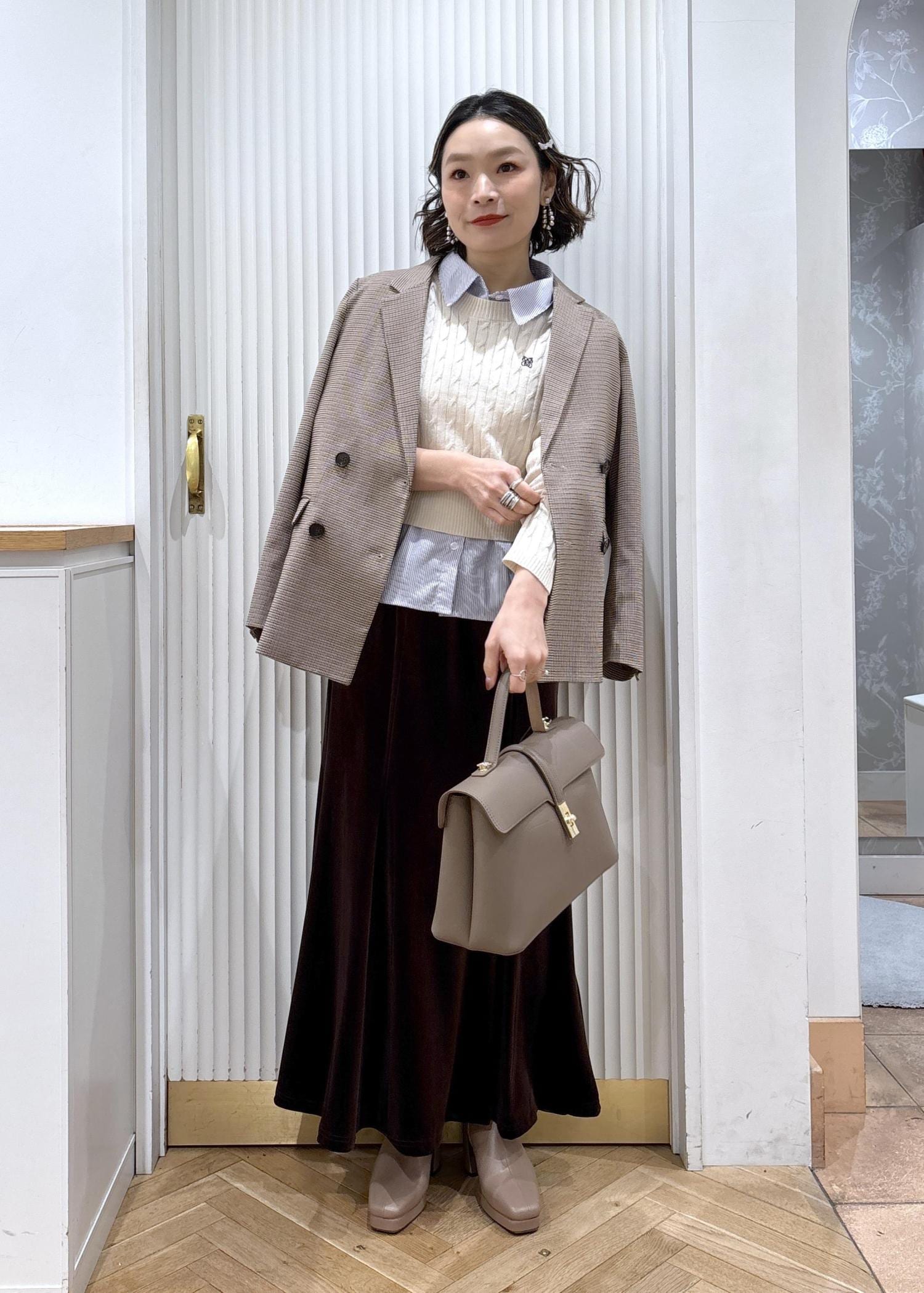 スッキリとしたダブルジャケットに華やかなブラウス、マーメイドスカートで女性らしい王道のセレモニースタイル。セットアップなのでお手持ちのお洋服とも掛け合わせ可能ですよ!