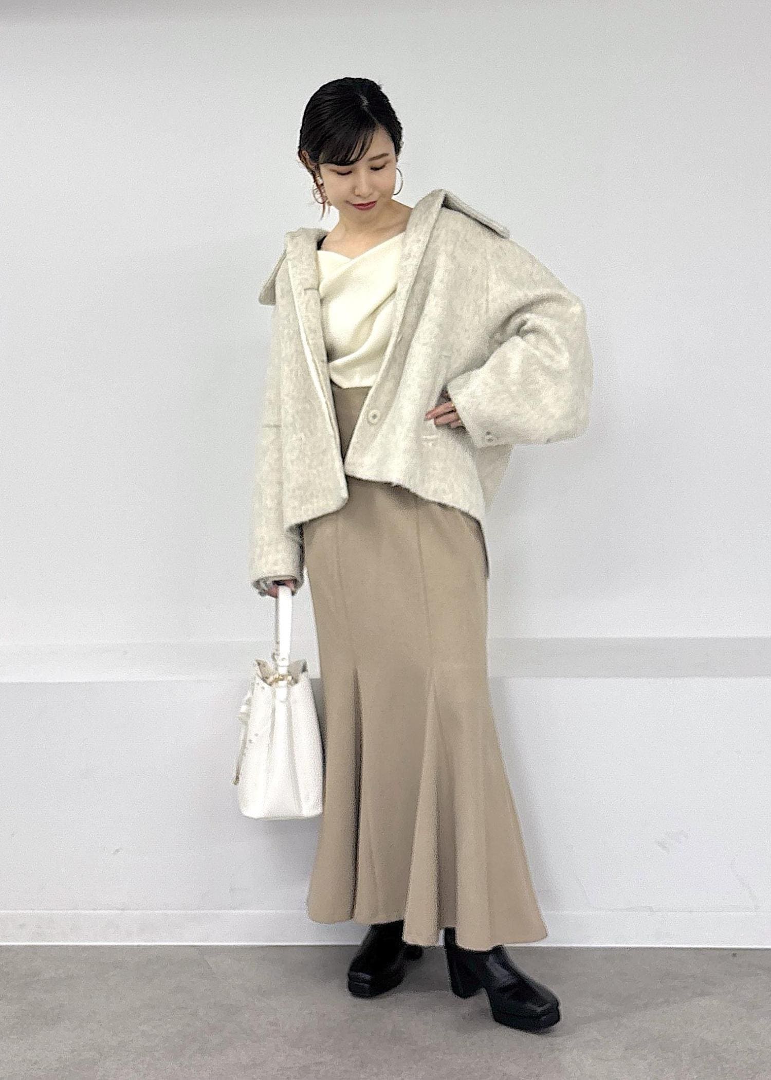 顔診断はキュートなので、顔周りは柔らかいカラーを合わせ全体的にメリハリの付きすぎない、優しい印象になるようなカラー合わせを選びました◎