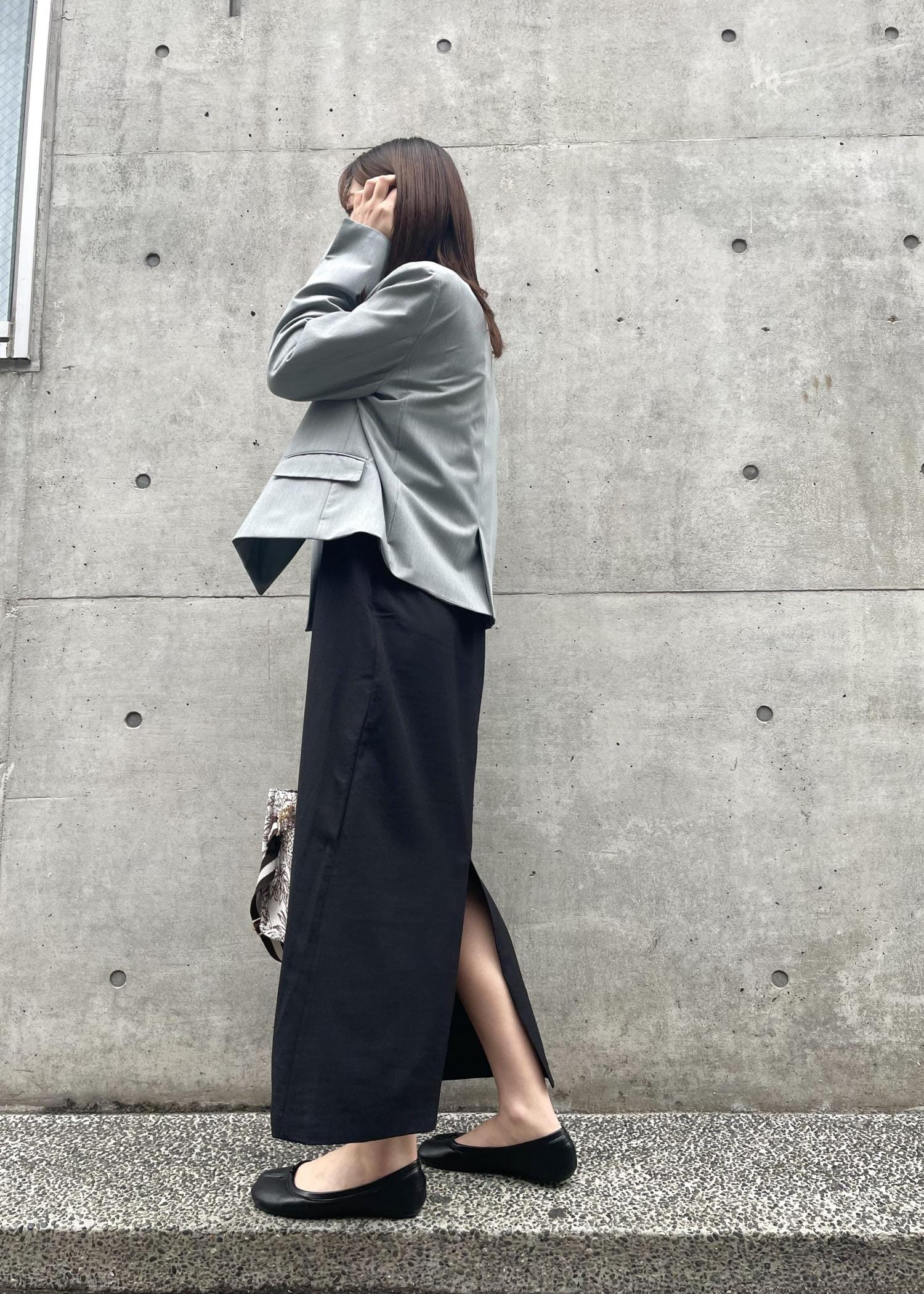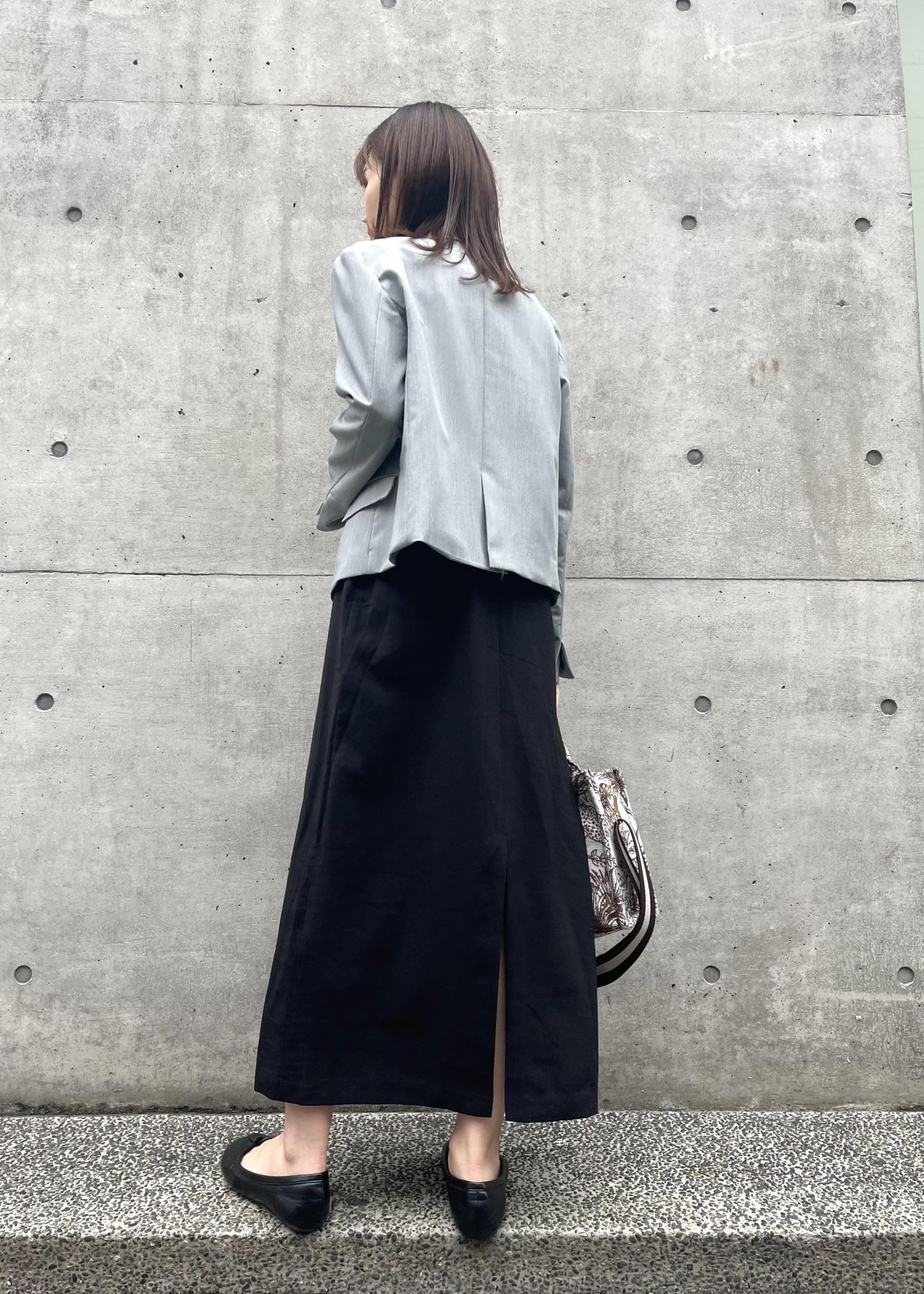私のような骨格ウェーブの方は短丈のものを着るとスタイルアップして見えるので、今回短めのジャケットを合わせてみました。