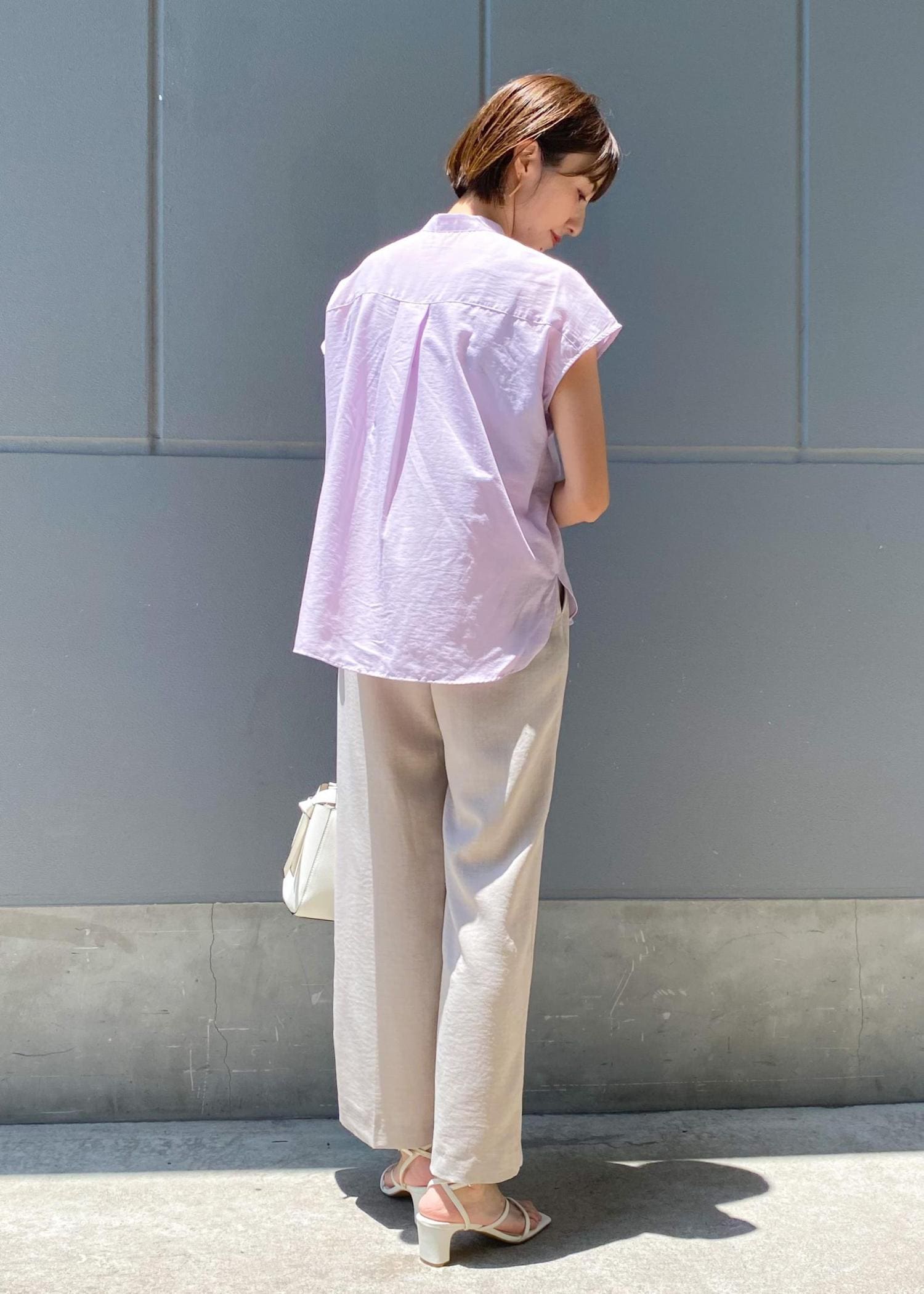 リネン風のワイドパンツですが、ポリエステルなのでシワになりにくく取り扱いも楽でした!