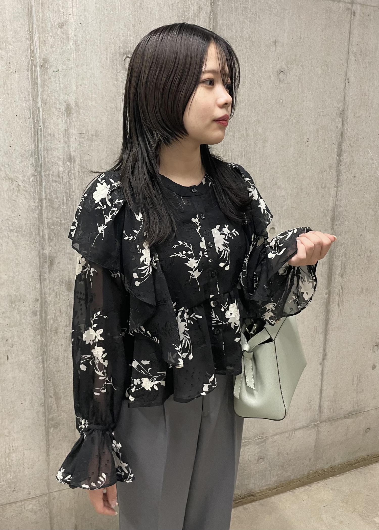 フリルが可愛らしい華やかブラウスはブラック×グレーにすることで、上品で落ち着いた印象に!こなれ感のあるオフィスカジュアルコーデとしてもおすすめです◎ 程よく短い丈感なのでボトムアウトスタイルがおすすめです! LINEで在庫のお問い合わせや商品、コーディネートのご相談など是非お気軽にお問い合わせくださいませ。 LINEでららぽーと横浜VISスタッフにご相談は【友だち追加】をタップ!!