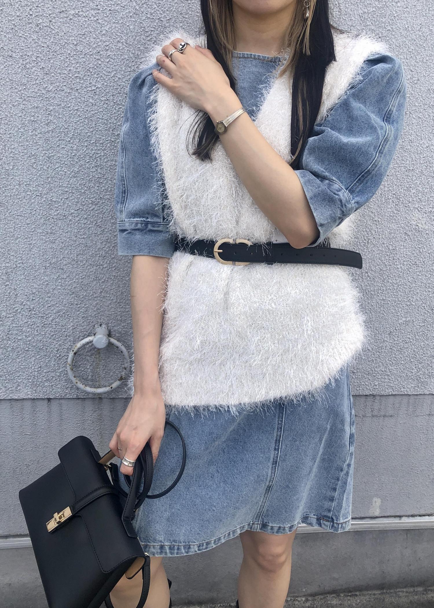 1着で着ても可愛いですが、ファーのベストを合わせて更に秋のムードを感じられるコーディネートにしました。