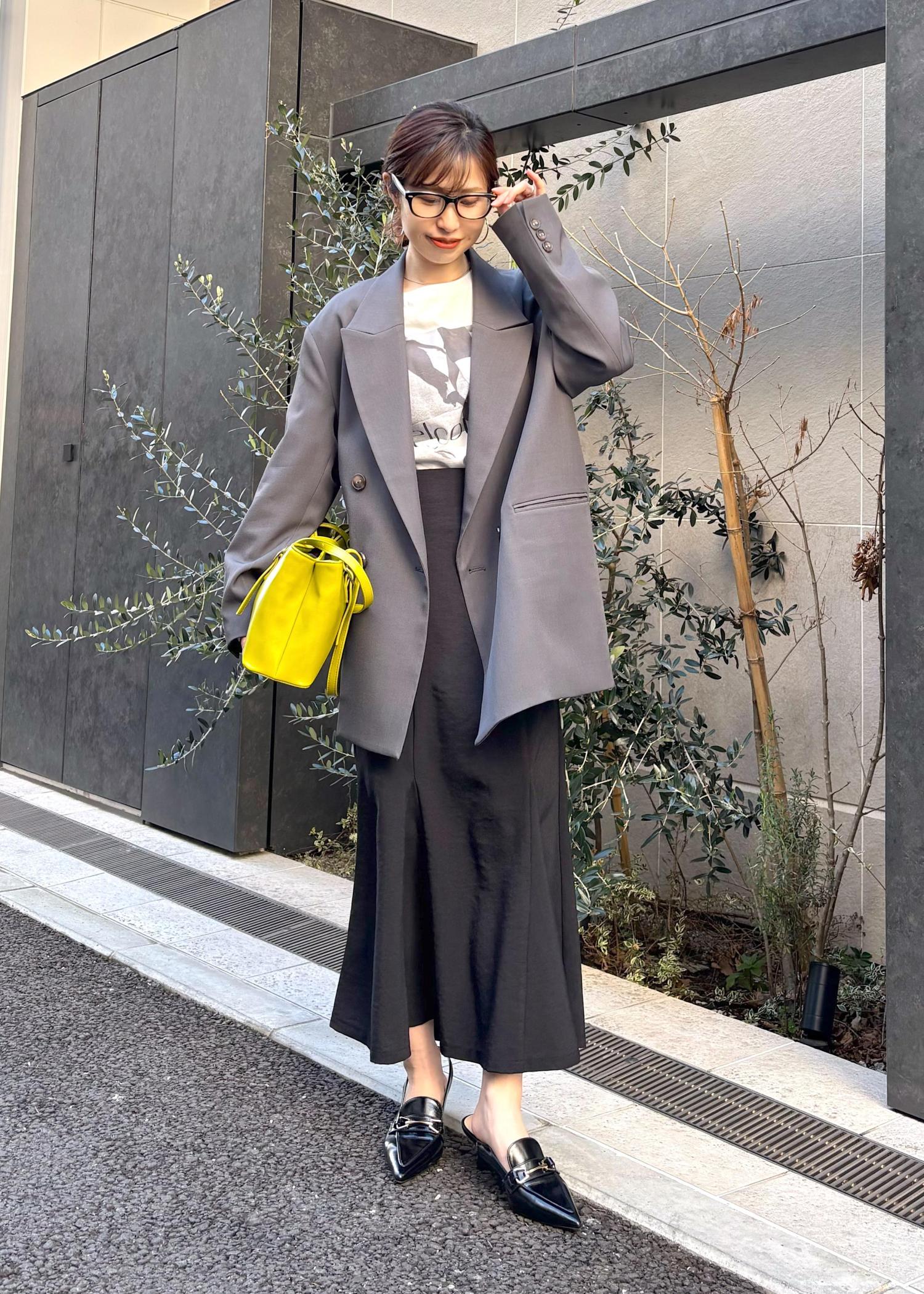 シアーとラメが綺麗なブラウスに秋らしいチャコールカラーのパンツを合わせ、通勤でも使えるコーディネートにしてみました。