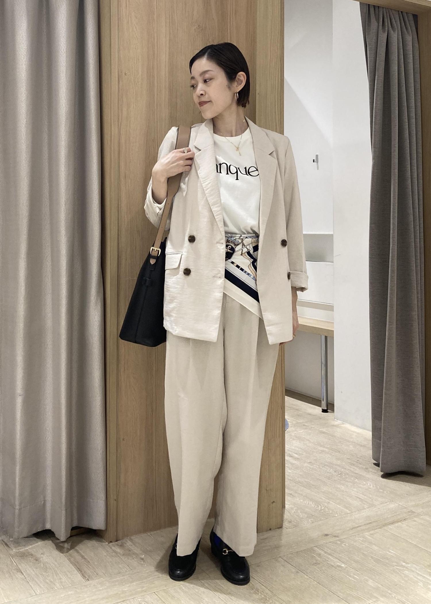 短丈でも短すぎず、少し肌見せができる着丈になっています。 -