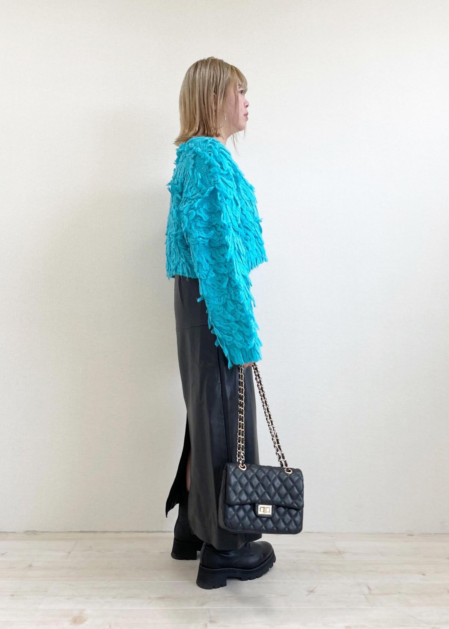 アウトレットVISループフリンジハート釦カーディガンターコイズ / F¥2,637レビューループフリンジが今年らしいデザイン。