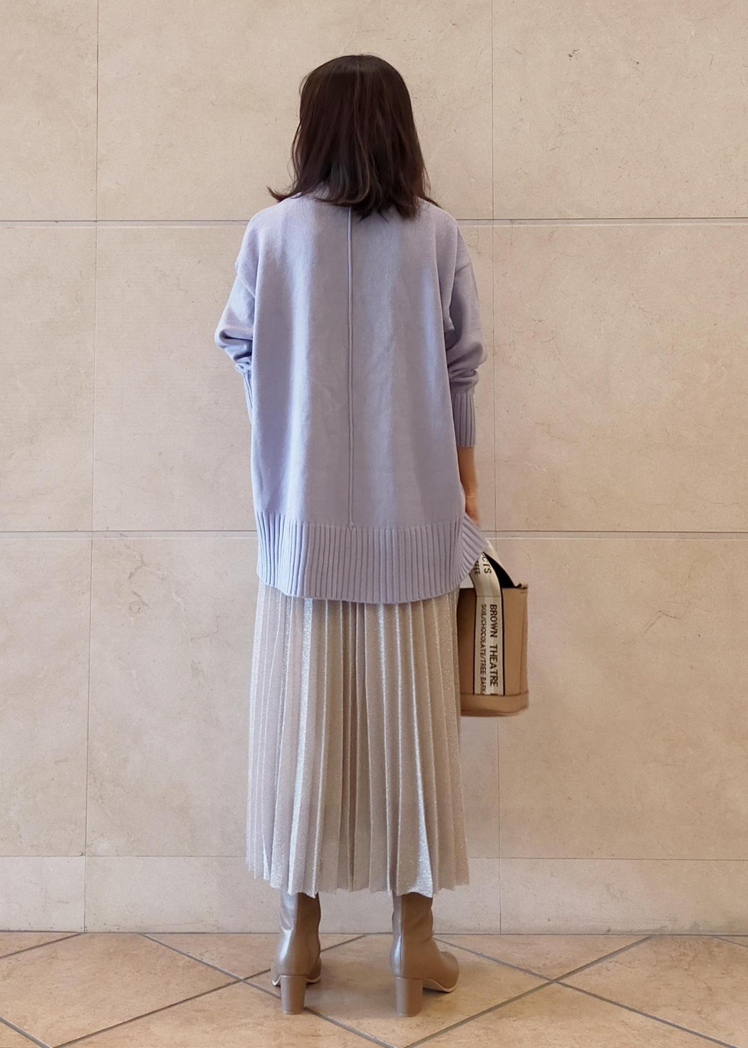 ラベンダーカラーにラメプリーツスカートを合わせてコーディネートしました♪