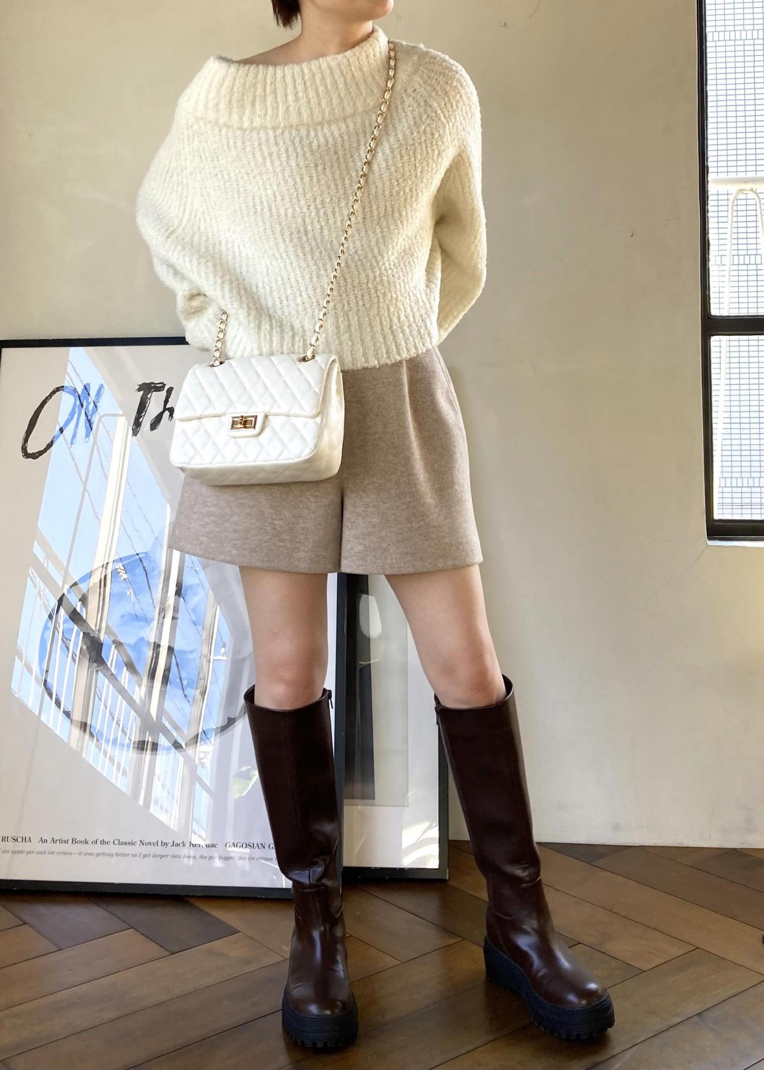 女性らしい抜け感が出るので、色合いもホワイト×ベージュの柔らかい色でまとめています。