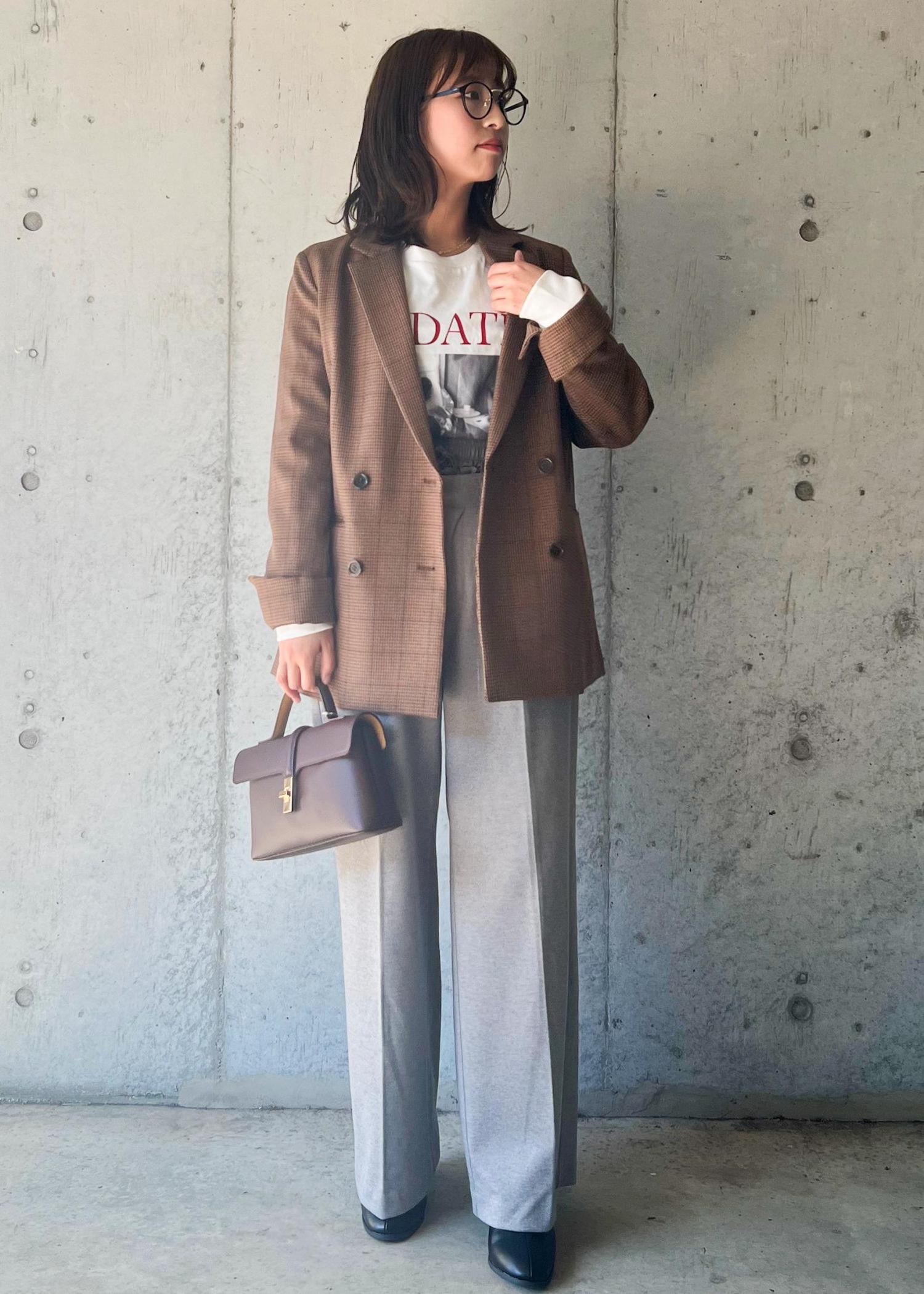 Tシャツ×起毛ワイドパンツのカジュアルコーデをジャケットで締めた秋のジャケットカジュアルコーデです。