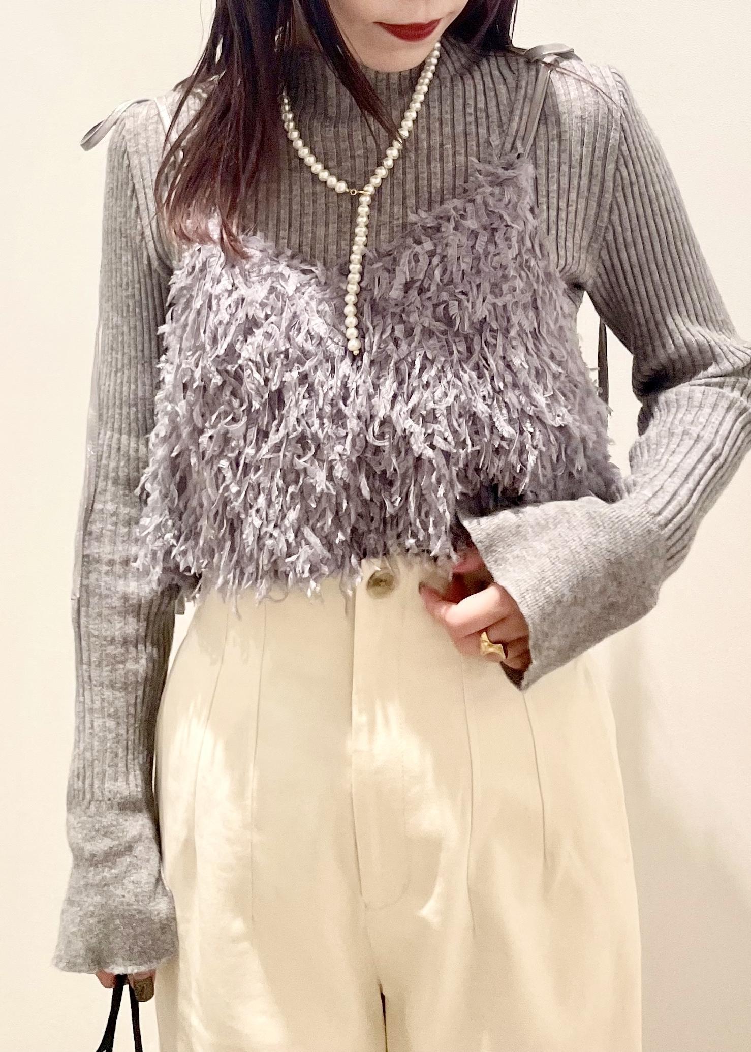 定番のリブニットにビスチェを合わせた、ワンランク上のコーディネート。 コンパクトな着丈のビスチェと、ハイウエストボトムで低身長でもスッキリと☺︎ LINEで在庫のお問い合わせや商品、コーディネートのご相談など是非お気軽にお問い合わせくださいませ。 LINEで天神地下街VISスタッフにご相談は【友だち追加】をタップ!!