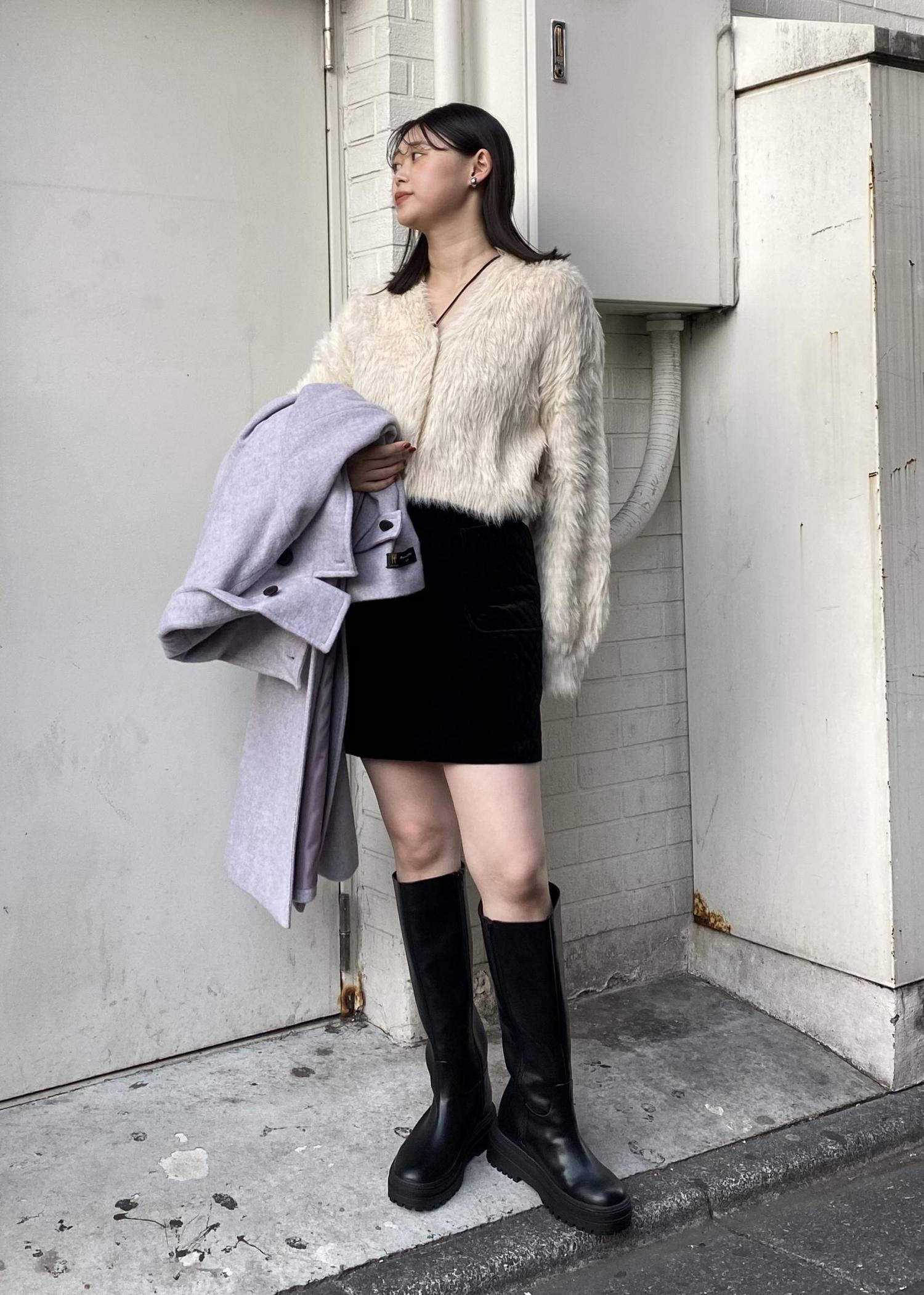 冬に最適なロングコートは柔らかいパープルにし、インナーはショートカーディガンにベロアミニスカートを合わせ、ロングブーツで大人らしさもUP! ご覧いただきありがとうございます! お気に入り機能で見返しも可能です◎ Instagramも更新中です是非チェックしてみてください♡ ルミネエスト LINEで在庫のお問い合わせや商品、コーディネートのご相談など是非お気軽にお問い合わせくださいませ。 LINEで新宿ルミネエストVISスタッフにご相談は【友だち追加】をタップ!!