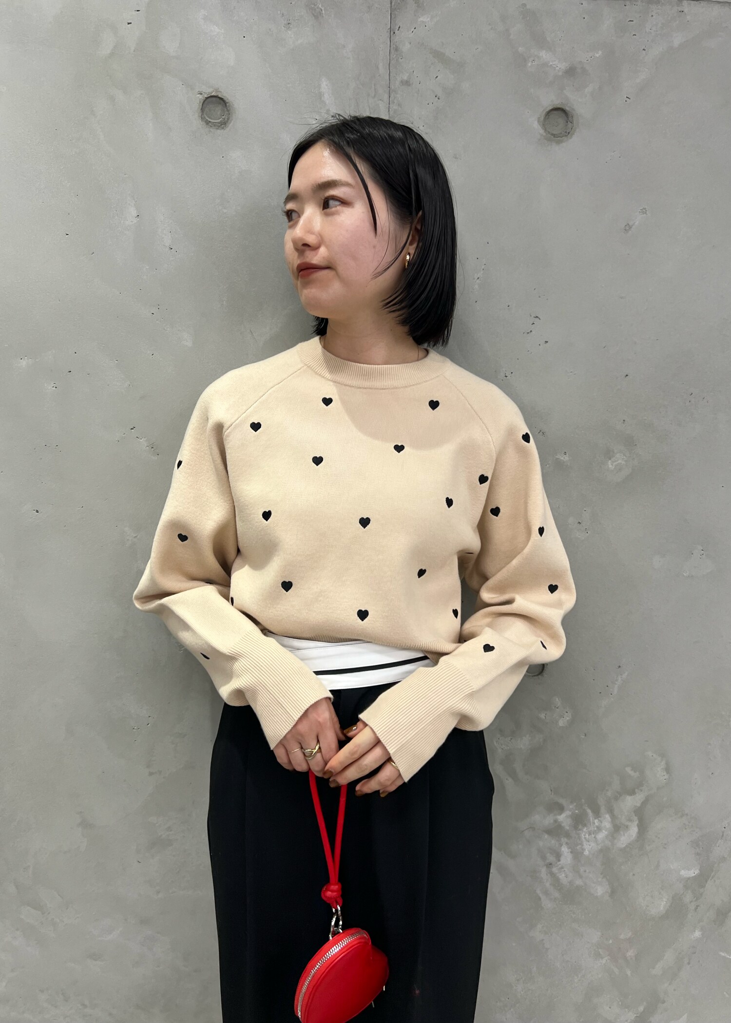 WEB限定のハート刺繍ニット。