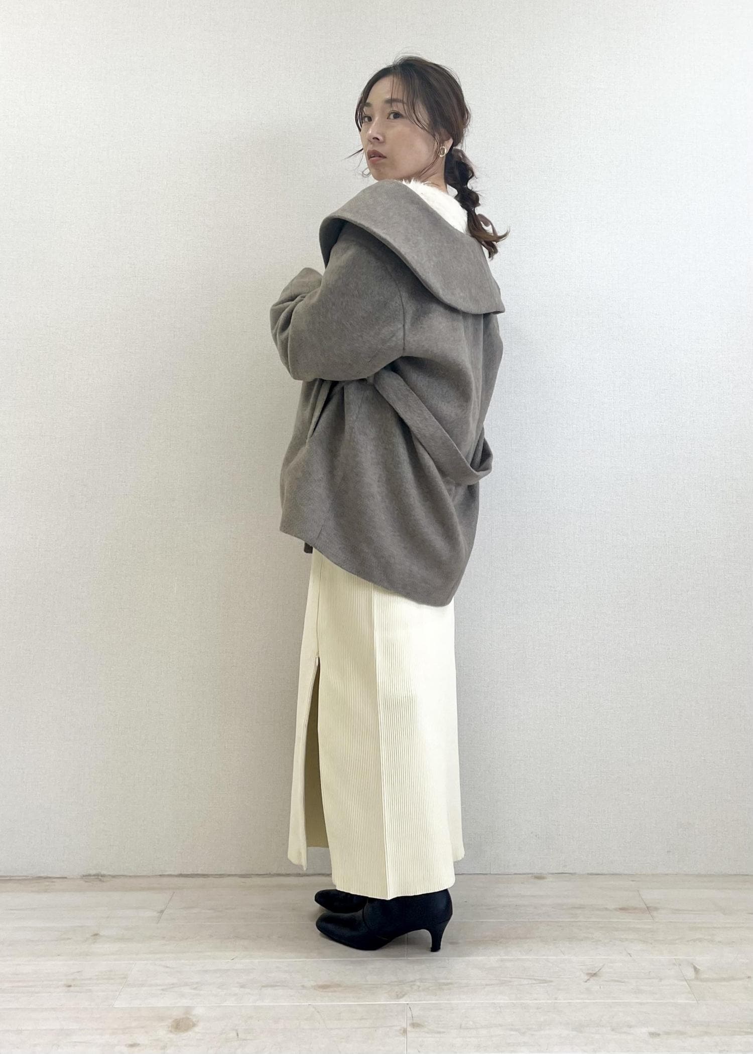 ベージュとホワイトのワントーンコーデで冬らしく♡ 小物でブラックを使って可愛らしさだけでない大人な雰囲気も アウターはリボンの使い方次第で雰囲気も変えられ、襟元はショールカラーのデザインでアクセントをプラス☺︎ こちらのスタイリング気に入っていただけたらお気に入り登録よろしくお願いいたします♡ LINEで在庫のお問い合わせや商品、コーディネートのご相談など是非お気軽にお問い合わせくださいませ。 LINEでルミネ大宮VISスタッフにご相談は【友だち追加】をタップ!!