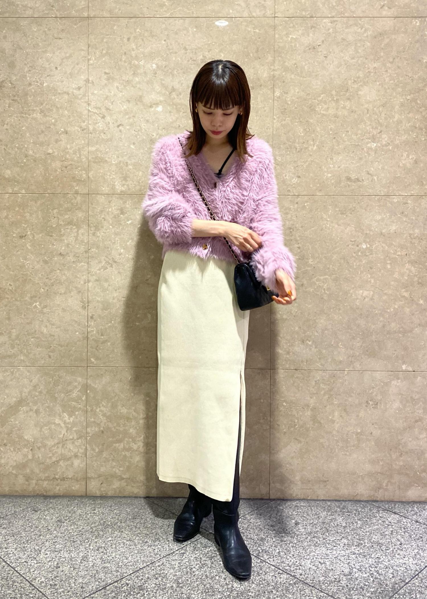 ボトムは白のタイトスカートで大人っぽく。